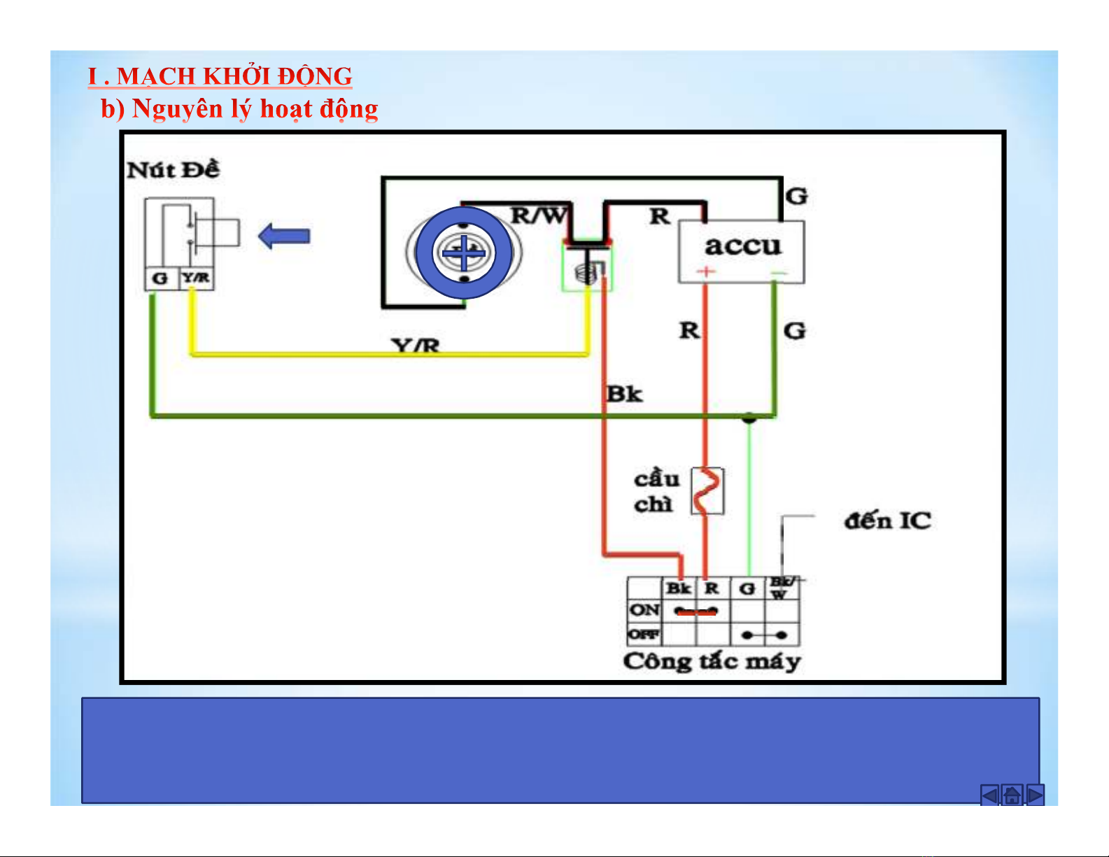 Công t ắc máy ởchếđộON. Khi t a ấn nút đề, dòng điện t ừacqucông t ắc máyrole đềnút đềvề