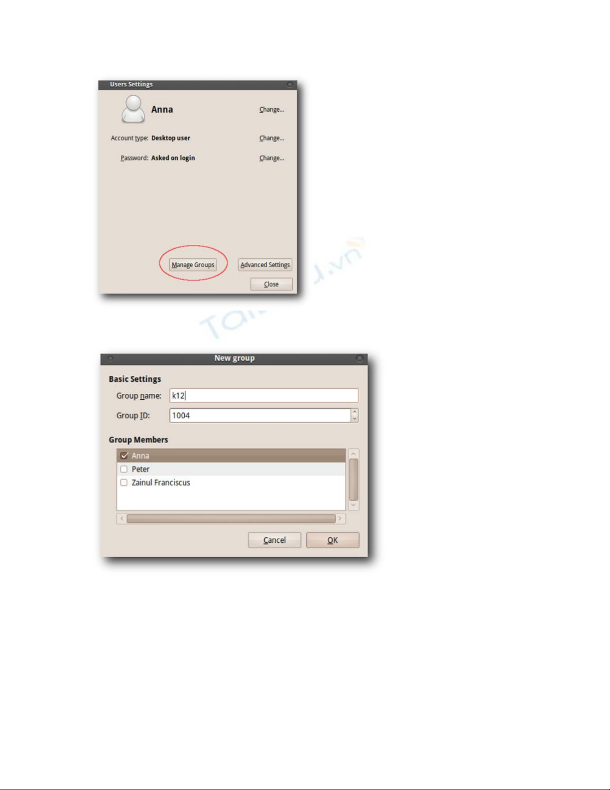 Và gán quyền cho tài khoản Anna và Kig trong nhóm k12