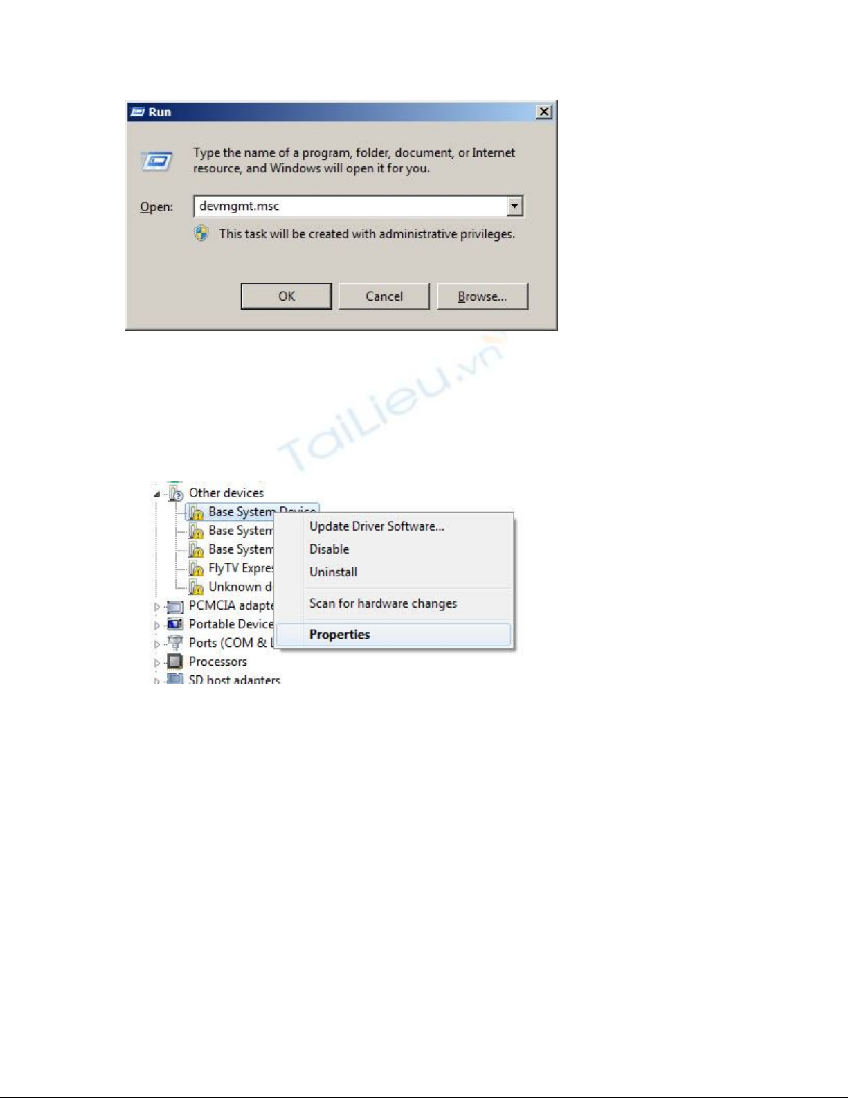 bằng cách vào cửa sổ Run, gõ devmgmt.msc