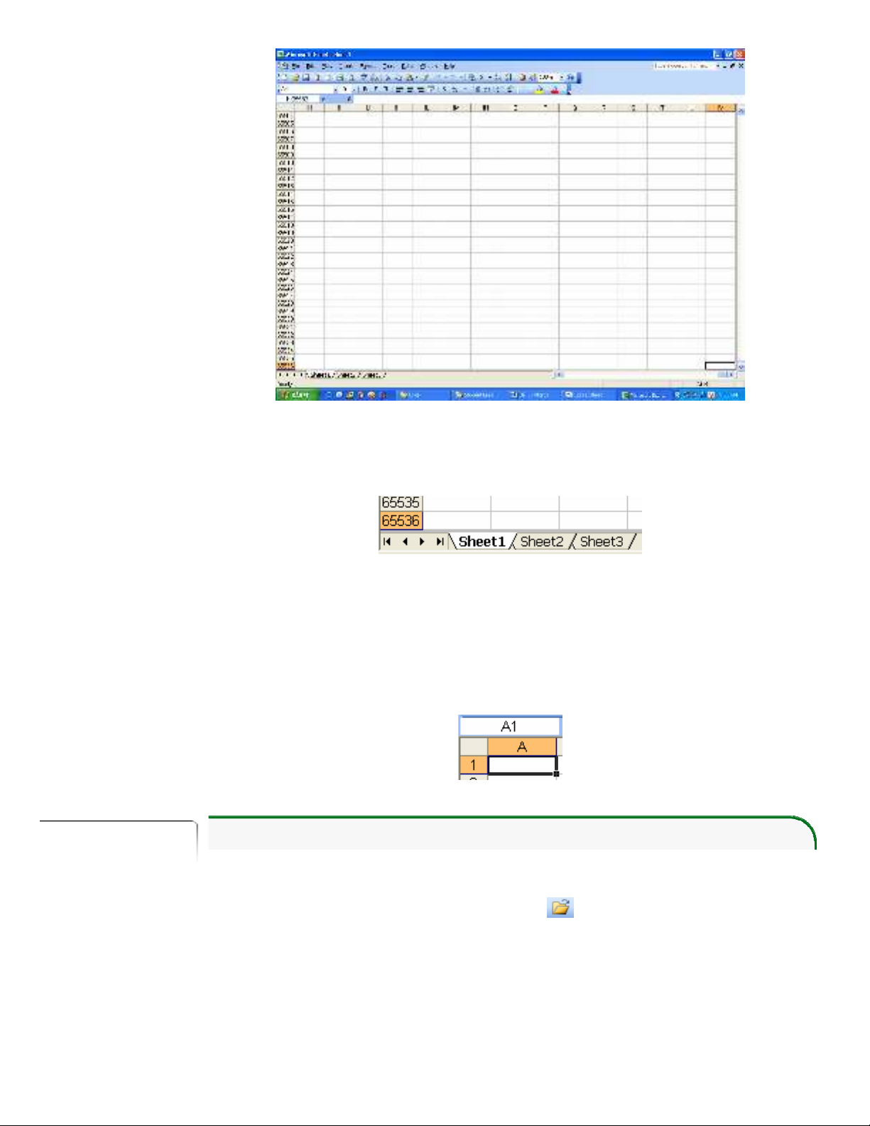 ô đầu tiên là A1 và địa chỉ của ô cuối cùng trên bảng tính là IV65536.