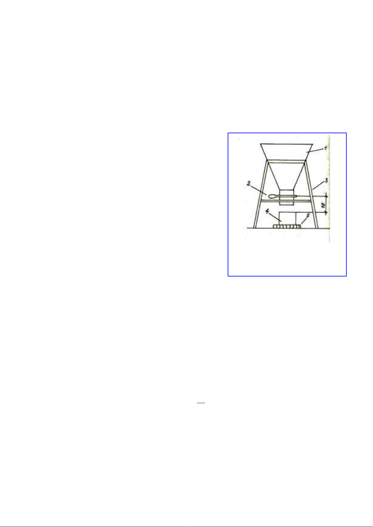 để miệng ống cách nắp đóng mở ở đuôi phễu 50mm, đổ bột xi măng đã sấy khô