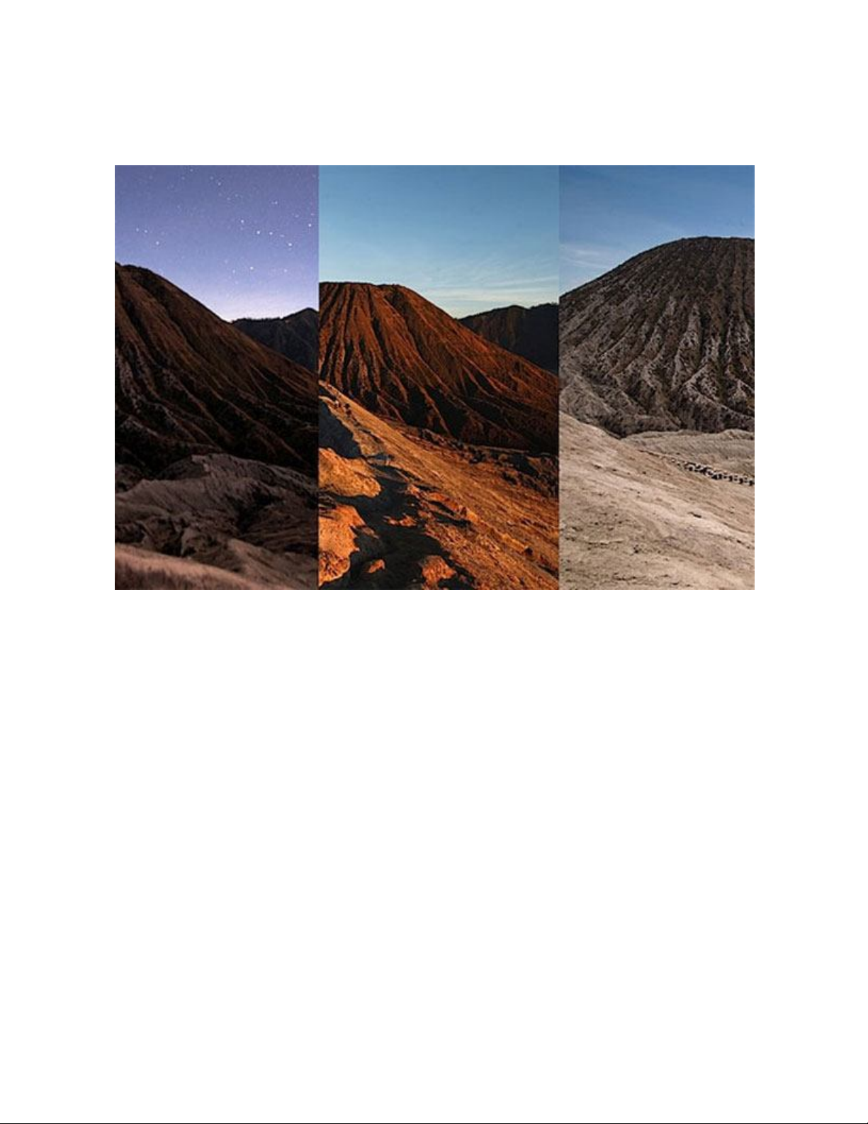 sang phải là hoàng hôn, bình minh và giữa trưa. Bạn thấy, cùng là ánh sáng tự nhiên nhưng trạng