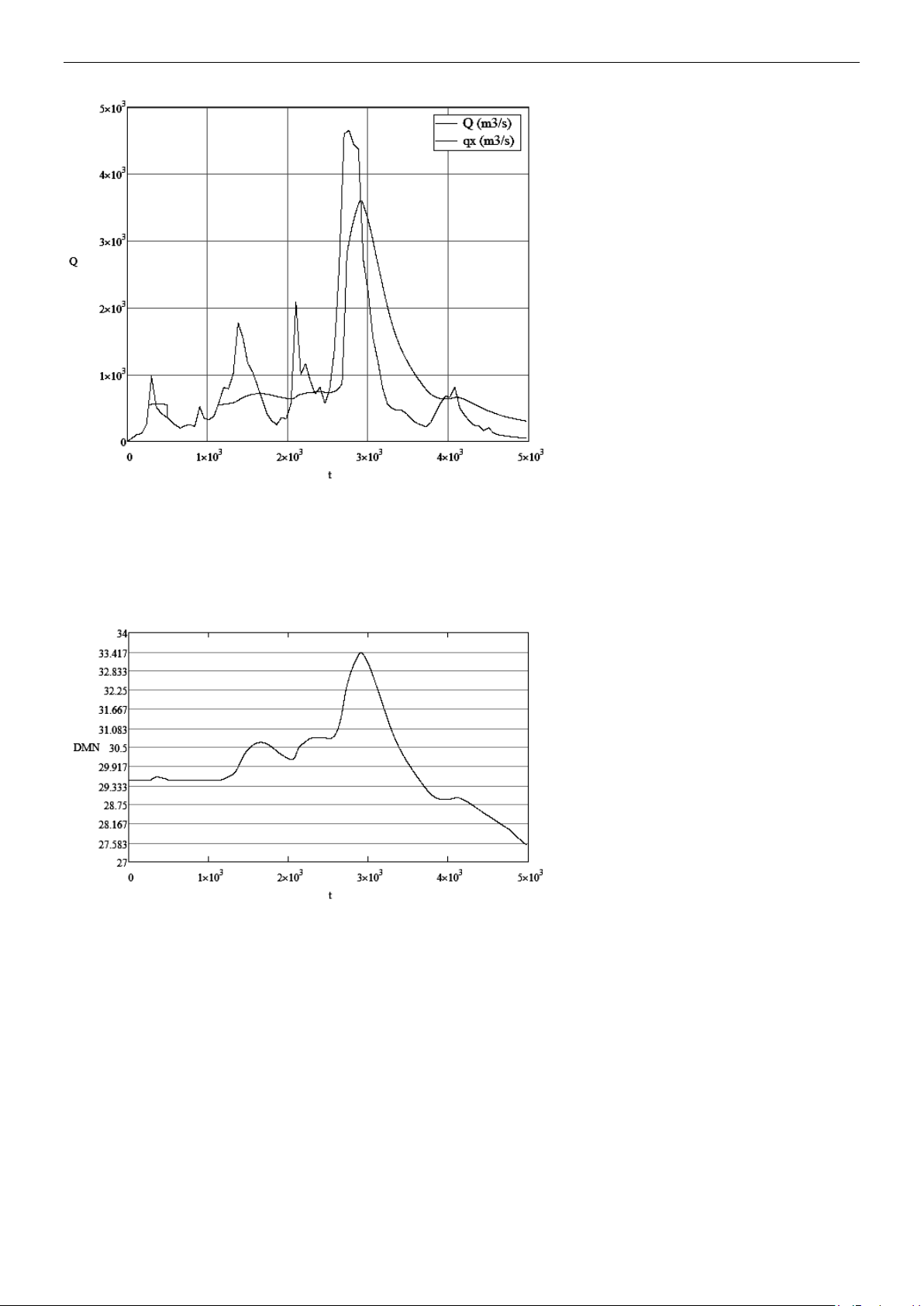 Hình 4. Đường quá trình lũ đến (p=0,01%) và đường