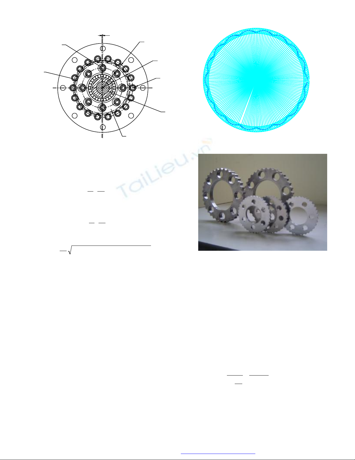 với tâm ổ bi, tạo nên bánh lệch tâm; 2) Đĩa răng có