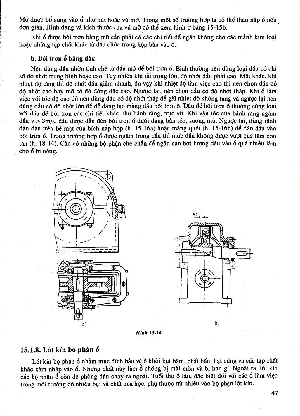 Về nguyên tắc , tất cả các ổ lăn đều được bôi trơn bằng dầu hoặc mỡ , riêng ổ bi chặn tự lựa lòng cầu thường chỉ bôi trơn bẳng dầu ,trừ trường hợp vòng quay rất thấp
