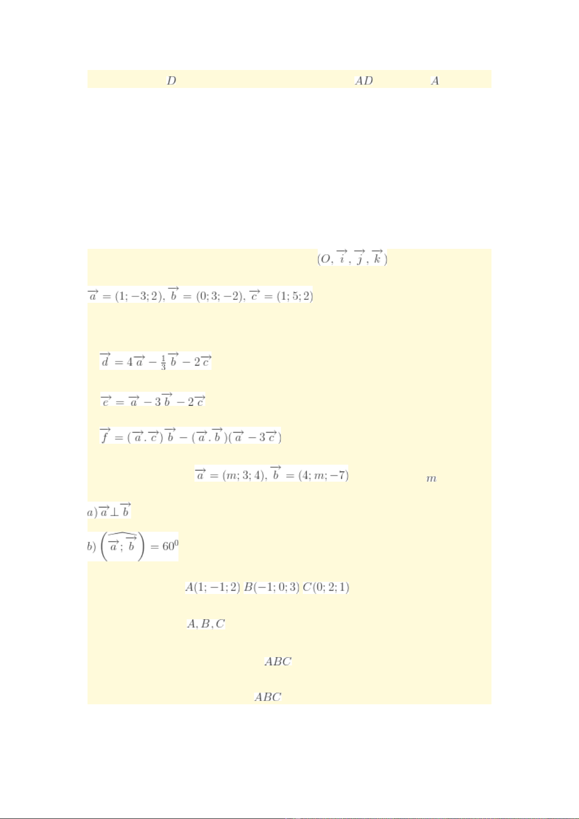 2. Cho ha vectơ . Tìm giá trị đ .ể