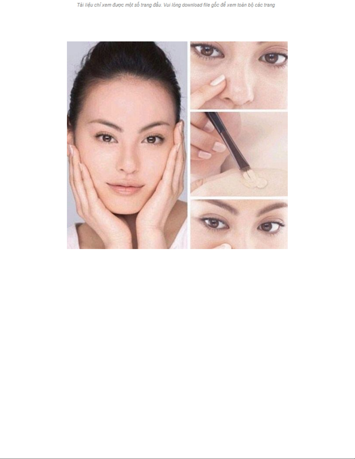 Dùng kem che khuyết điểm che đi những vết mụn, thâm và lấy một ít phấn