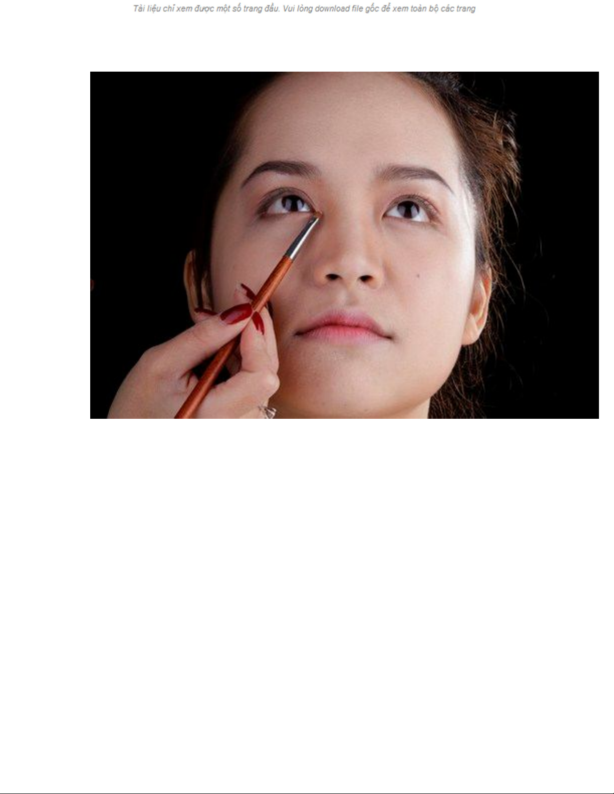 đừng kẻ xếch lên cao. Sau đó, dùng một ít màu nhũ đồng tô đều lên mi mắt.