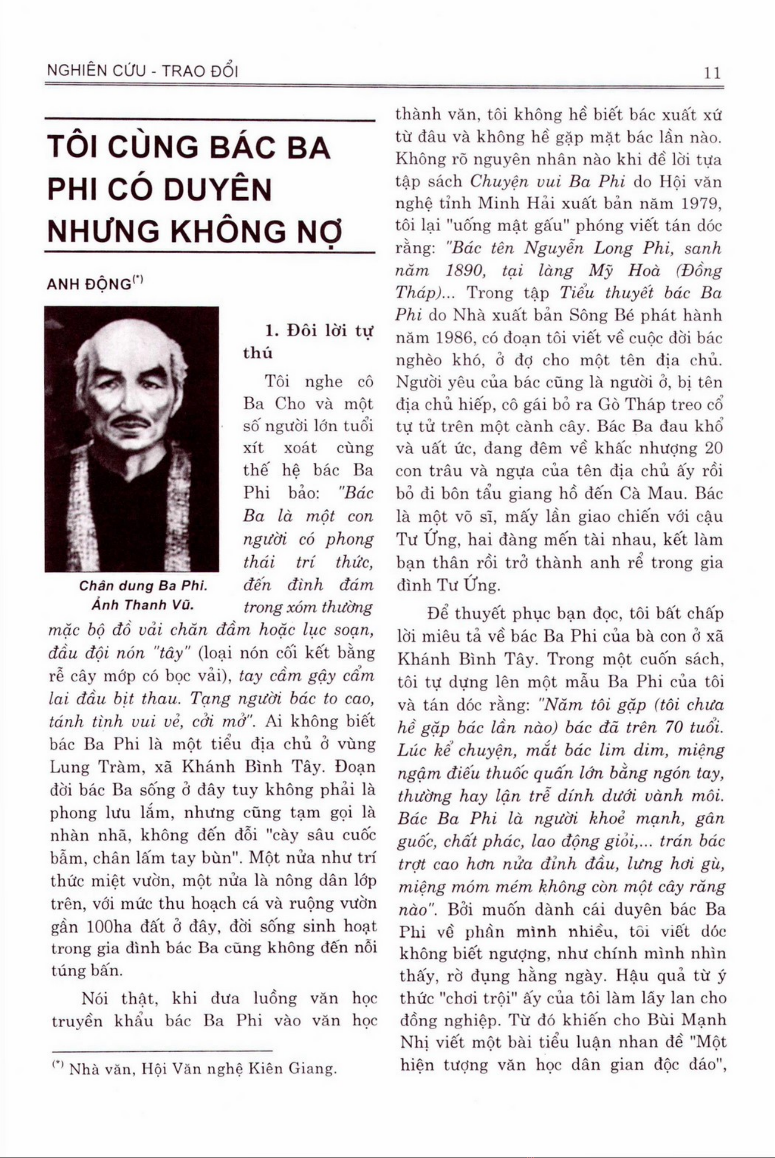 Bác Ba Phi là một nhân vật văn hóa nổi bật trong kho tàng văn học dân gian Việt Nam, đặc biệt là trong truyền thuyết và các câu chuyện dân gian miền Nam. Với hình ảnh một lão nông thông thái, hài hước và giàu kinh nghiệm sống, Bác Ba Phi không chỉ mang đến tiếng cười mà còn chứa đựng nhiều bài học quý giá về nhân sinh. Nghiên cứu này sẽ khám phá nguồn gốc, tính cách và những câu chuyện đặc sắc liên quan đến Bác Ba Phi, đồng thời phân tích ý nghĩa văn hóa của nhân vật này trong đời sống tinh thần của người dân.