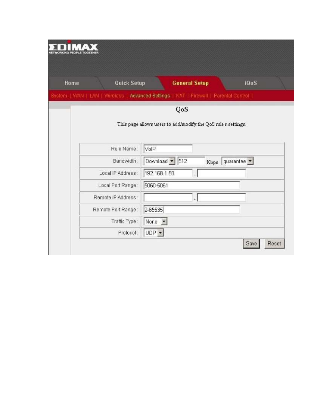 Hình 1: Giao diện cấu hình QoS trên bộ định tuyến Edimax