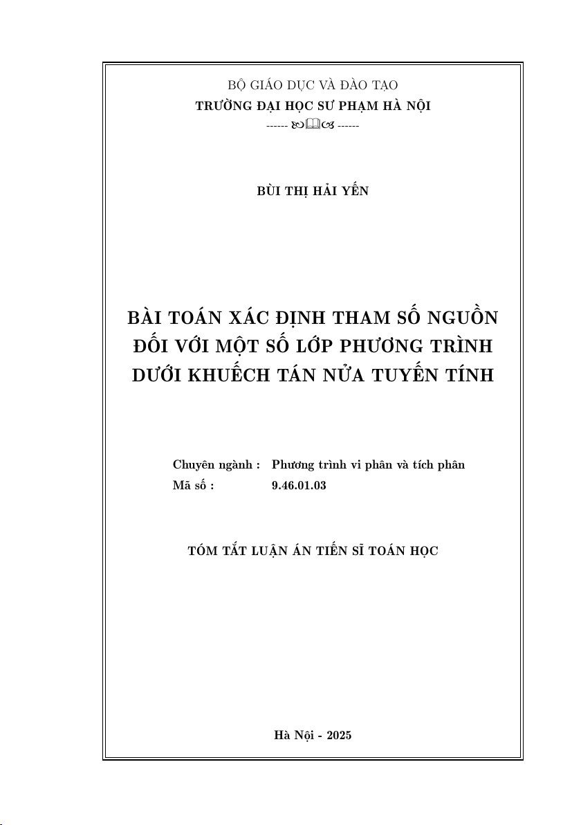 xác định tham số nguồn cho một số lớp phương trình dưới khuếch tán