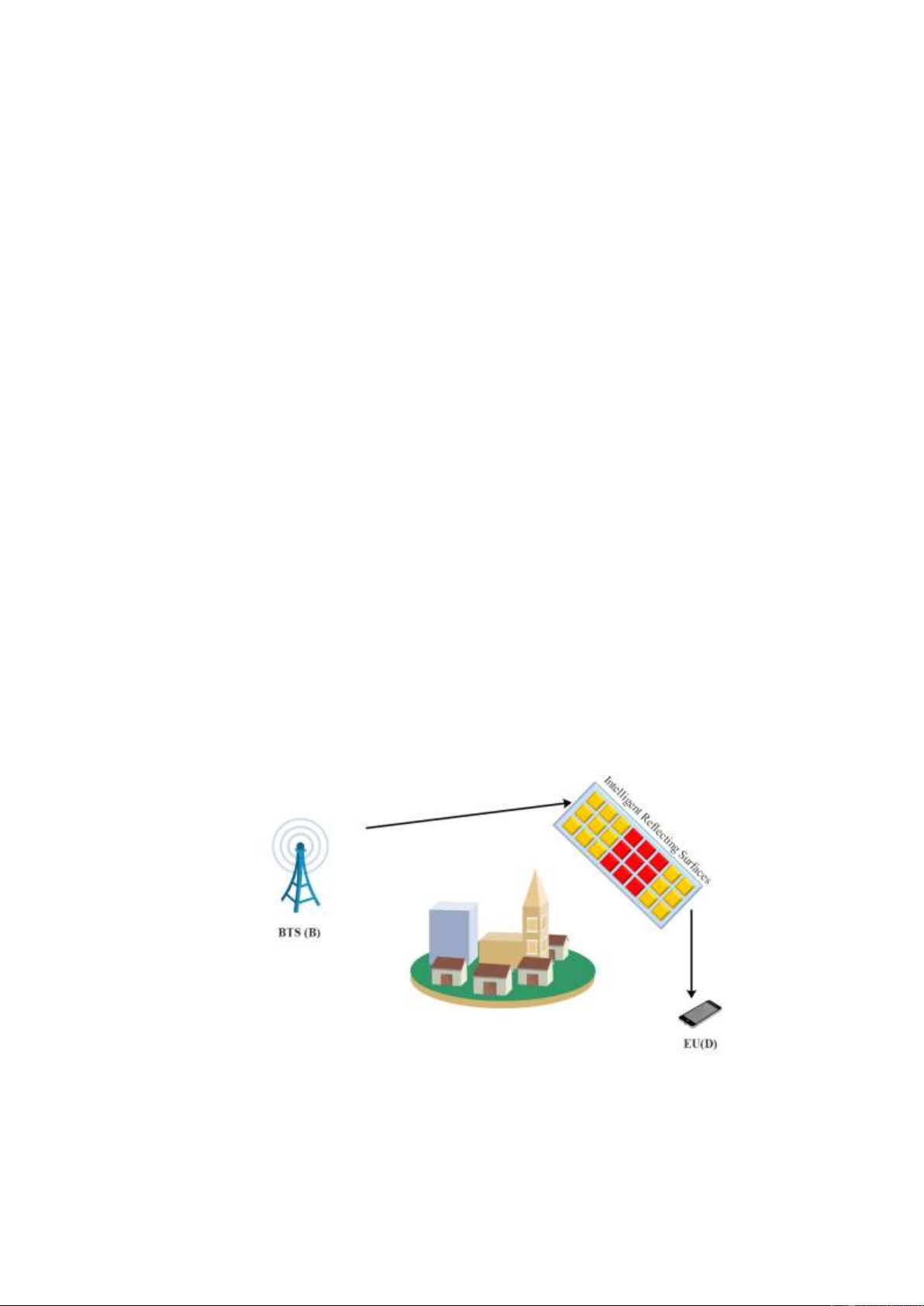 (ký hiệu là B), đóng vai trò máy phát, một máy thu (ký hiệu là D) và một RIS bao