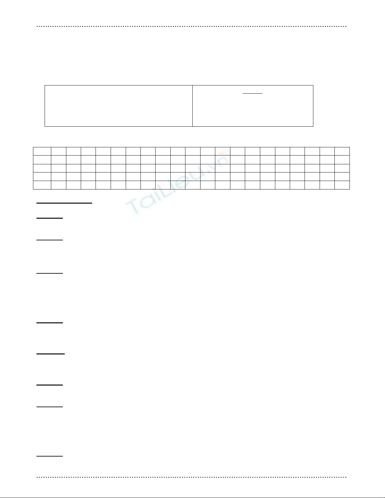 Đánh dấu (X) vào ô đáp án đúng nhất các câu hỏi phần trắc nghiệm