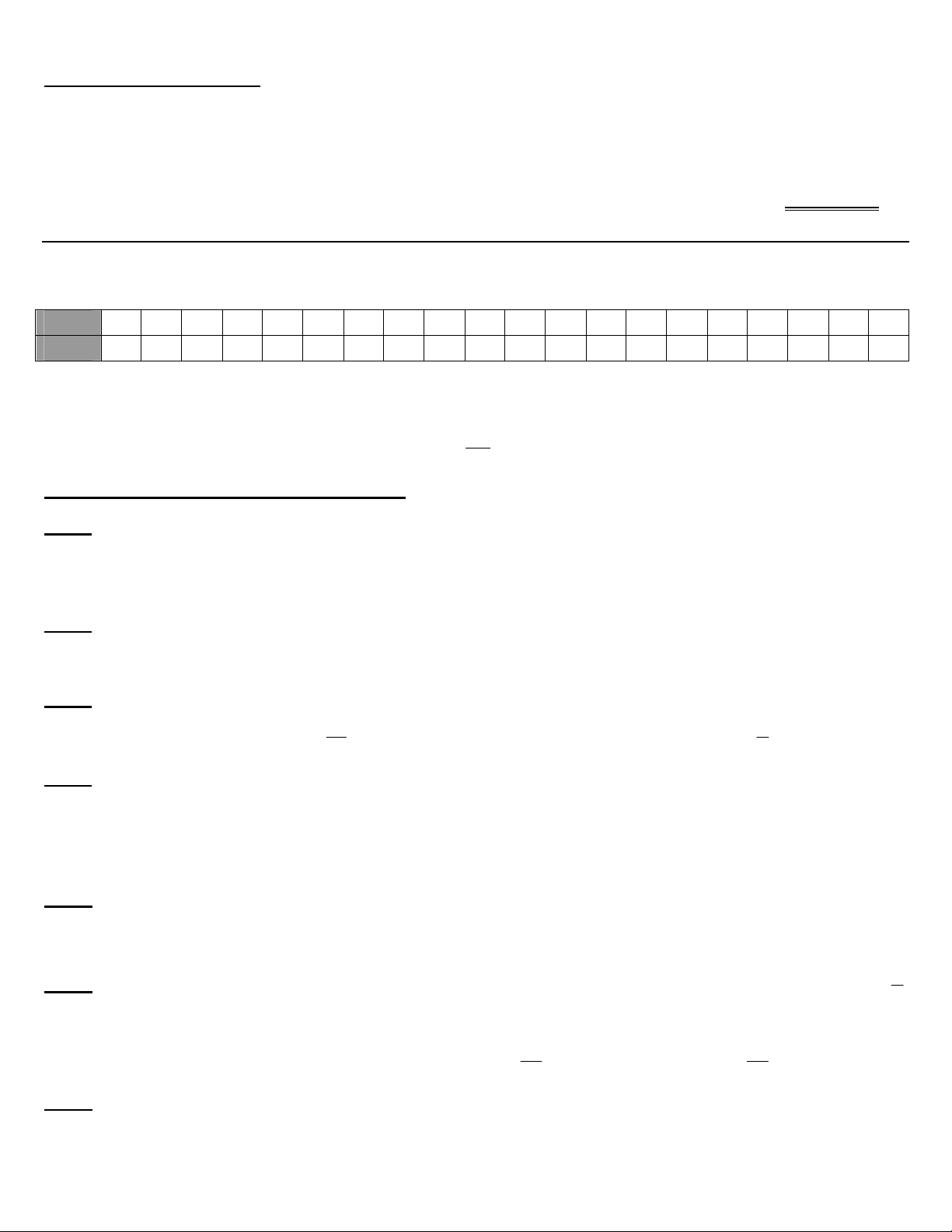 BẢNG TRẢ LỜI TRẮC NGHIỆM