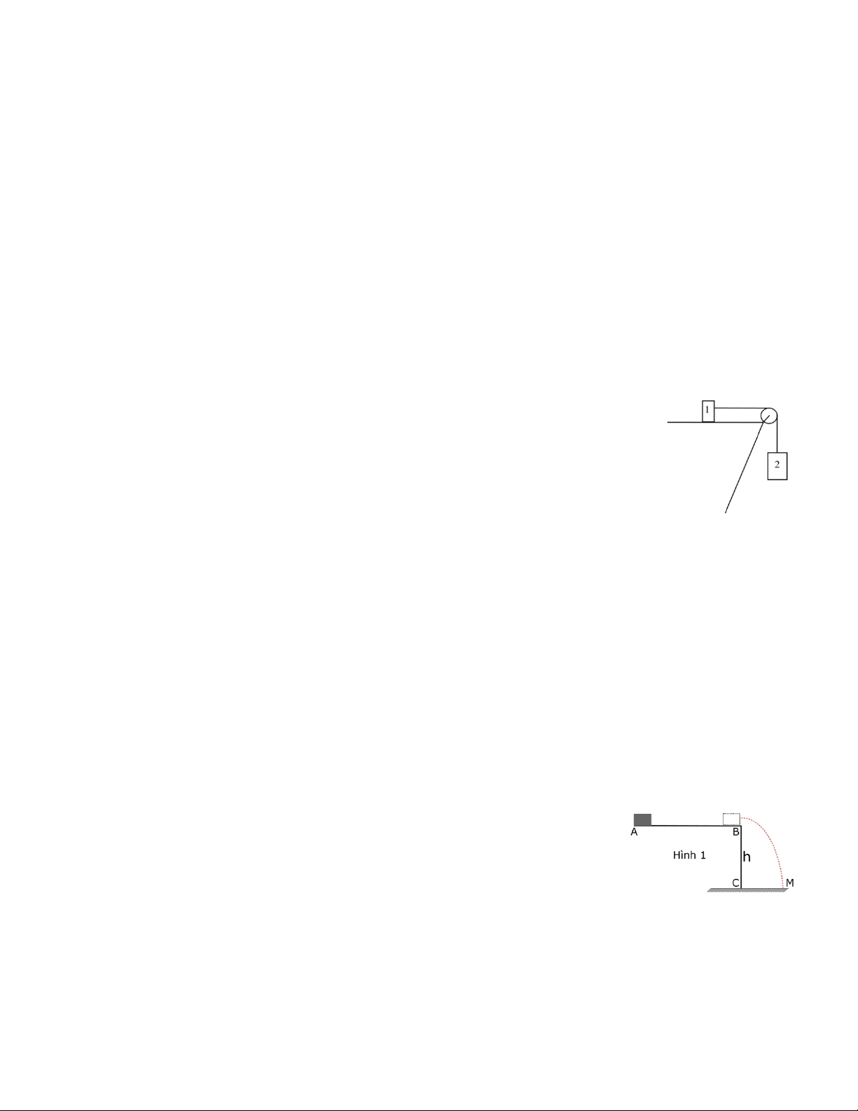 Câu 3: Cho hệ vật như hình vẽ, với vật 1 có khối lượng m1, vật 2 có khối lượng m2,