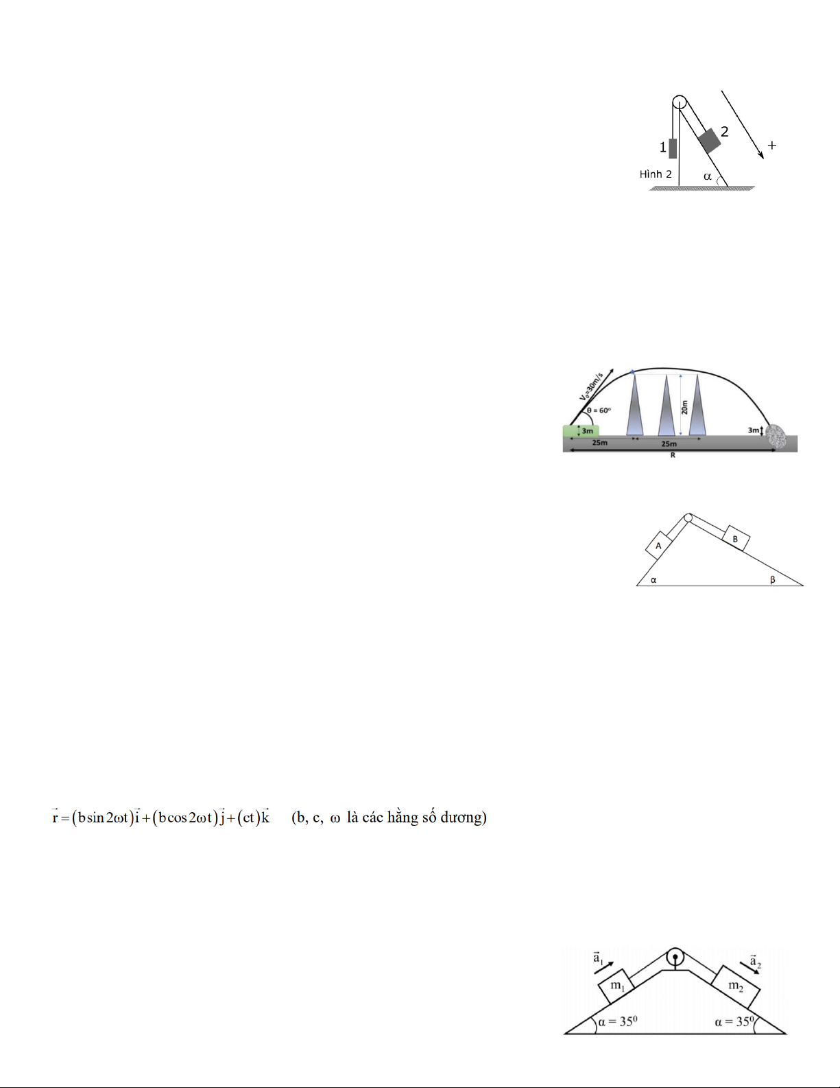 Câu 2. Một vật trượt không vận tốc đầu từ đỉnh mặt phẳng nghiêng có chiều