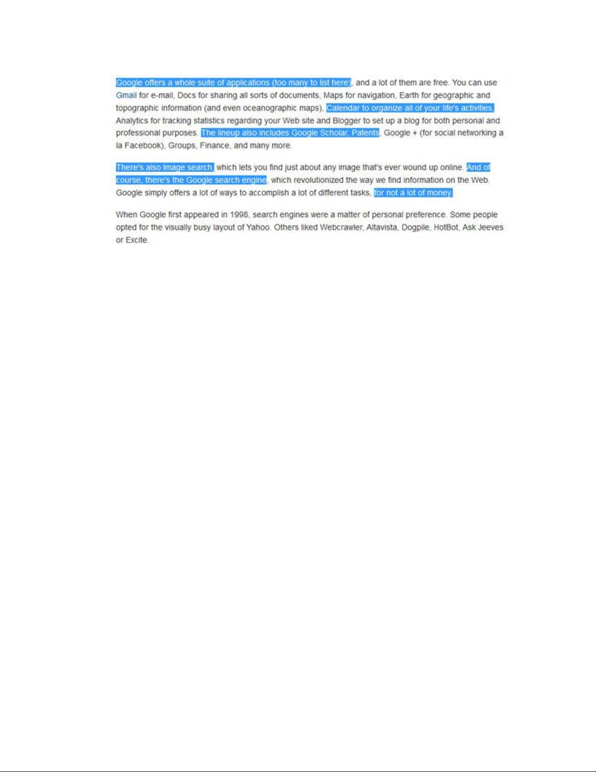 Nếu như bạn muốn lựa chọn các đoạn văn bản, hoặc các câu