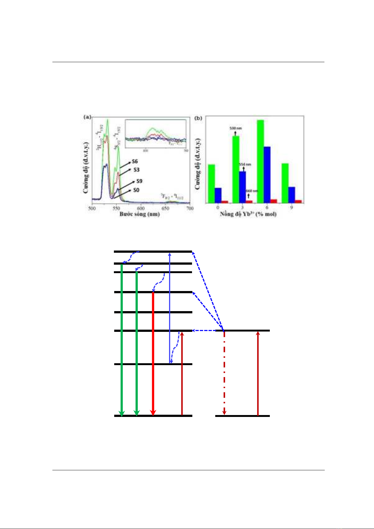 các mẫu ảnh hưởng do nồng độ Yb3+ pha tạp (hình 3 (b)). Khi lượng Yb3+ tăng, cường độ phát
