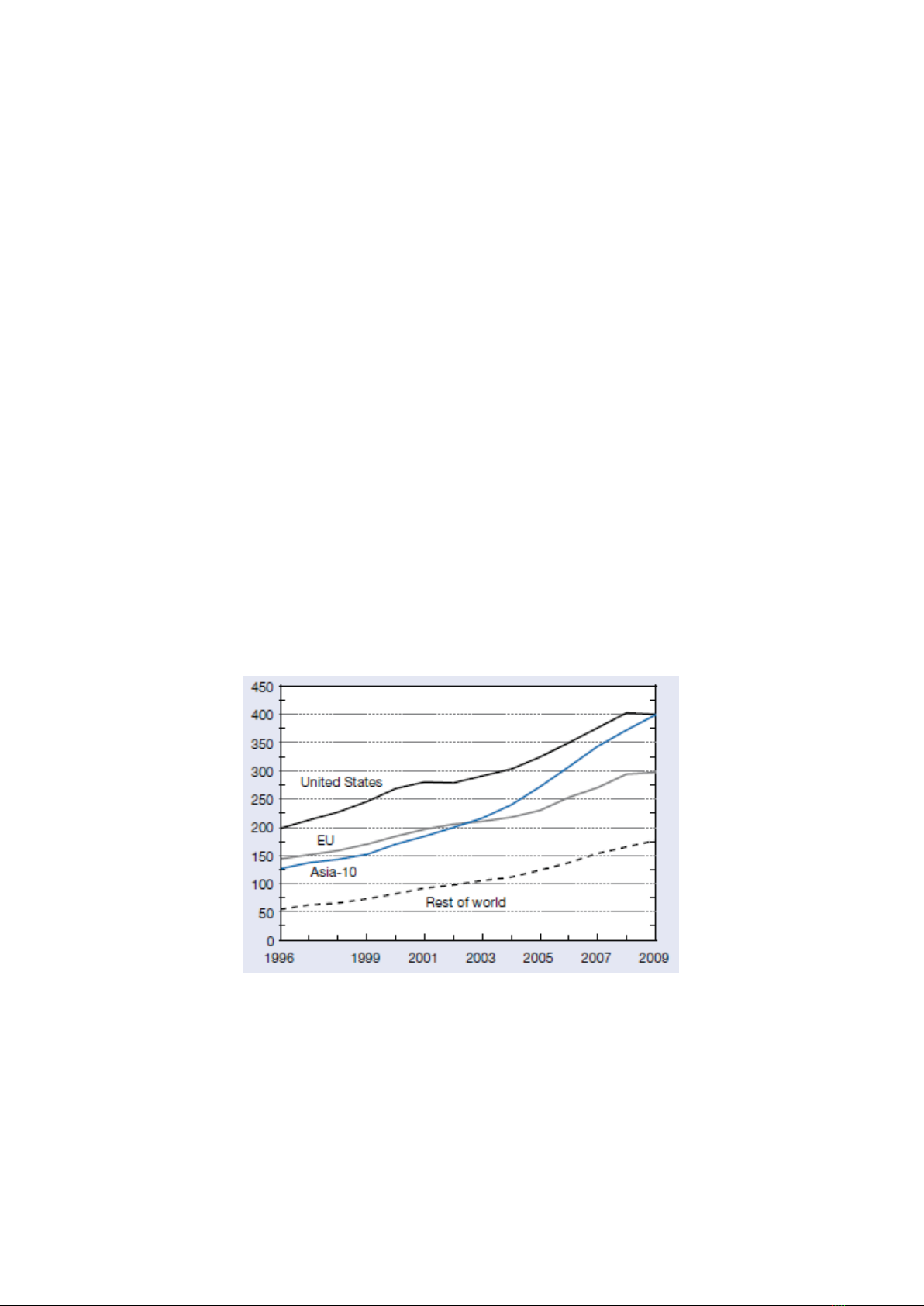 tăng từ 522 tỷ USD năm 1996 lên xấp xỉ 1,3 nghìn tỷ USD năm 2009, với tốc độ tăng
