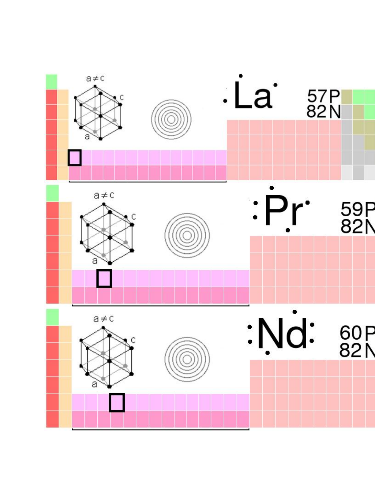 Cấu hình [Xe]5d16s2 [Xe]4f35d06s2 [Xe]4f45d06s2