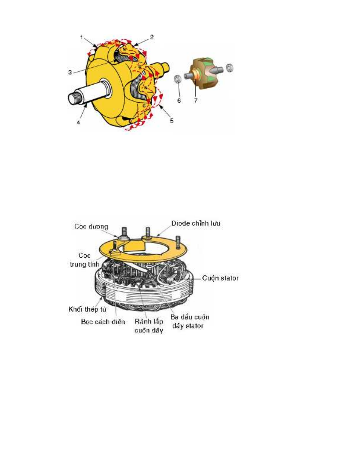 thích 4. Trục rotor 5. Đường sức từ 6. Ổ bi 7. Vòng tiếp điện.