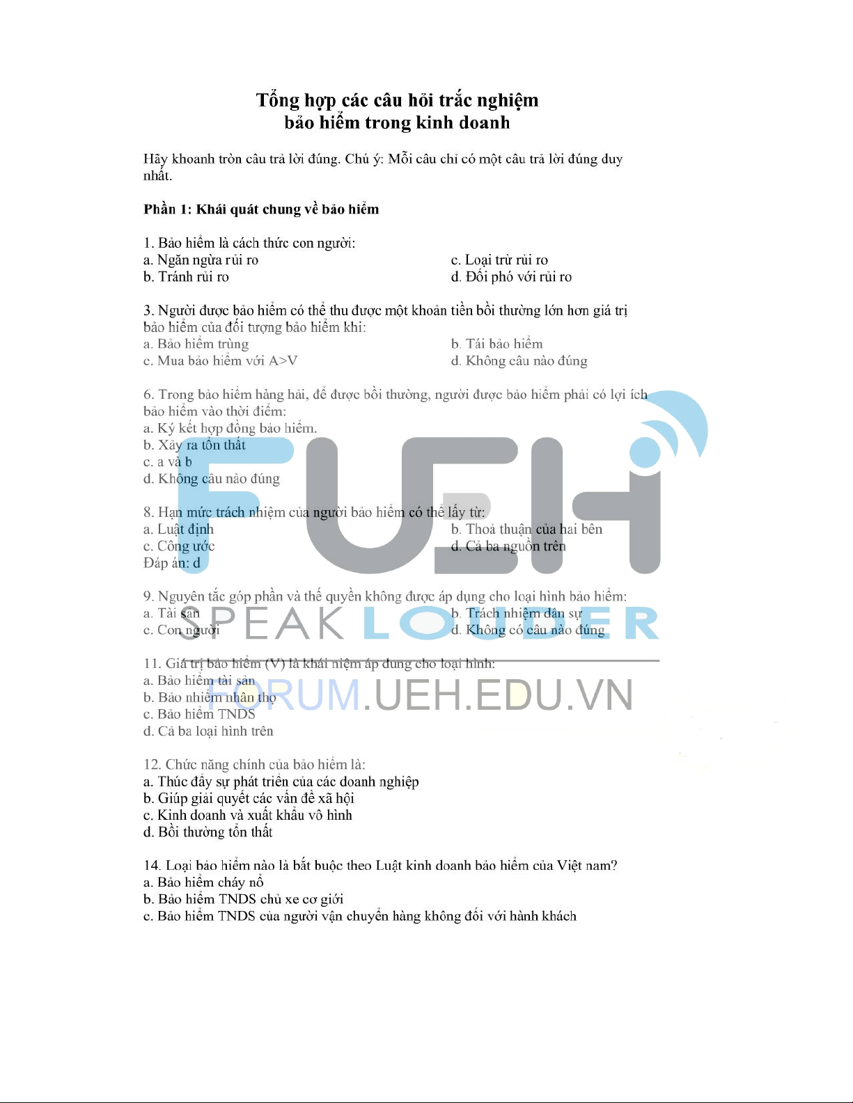 Tổng hợp các câu hỏi trắc nghiệm môn bảo hiểm trong kinh doanh