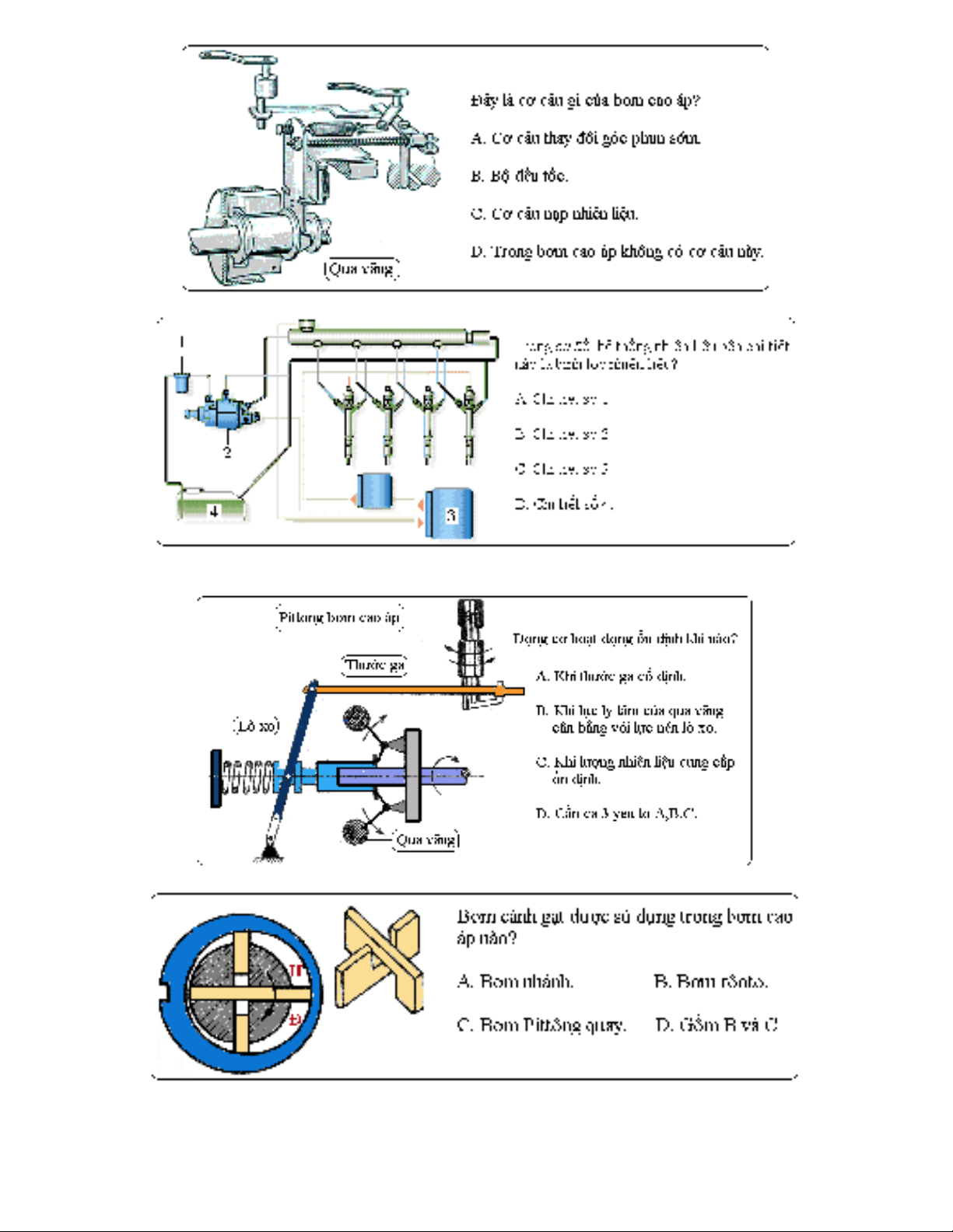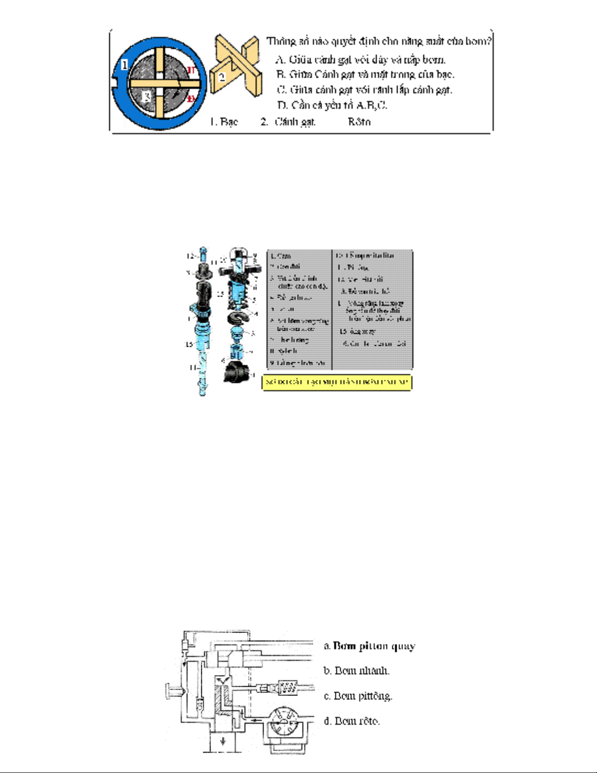 a. Van ti t l u.ế ư b. Van con thoi. c. B m cánh g t. d. Hành trình pittông b m.ơ ạ ơ
