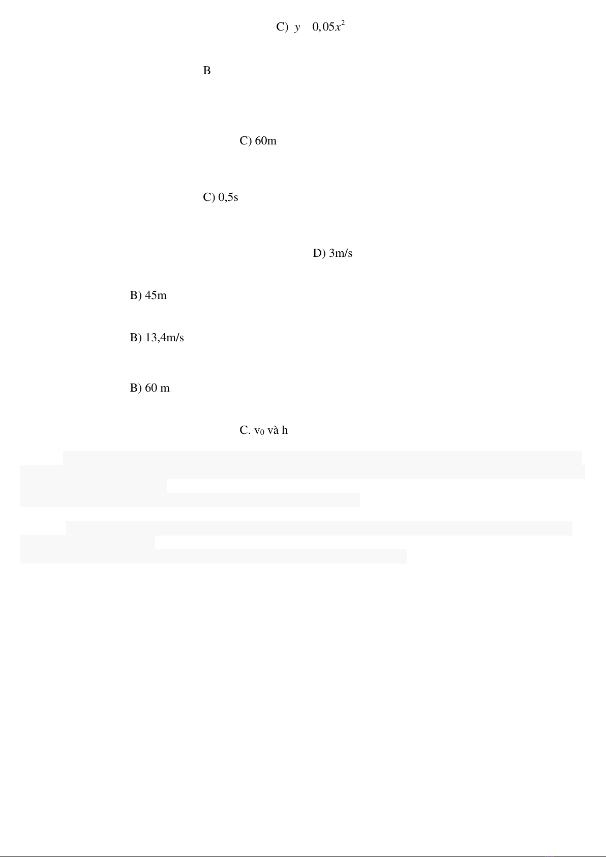 Câu 8. Một vật được ném theo phương ngang với tốc độ
