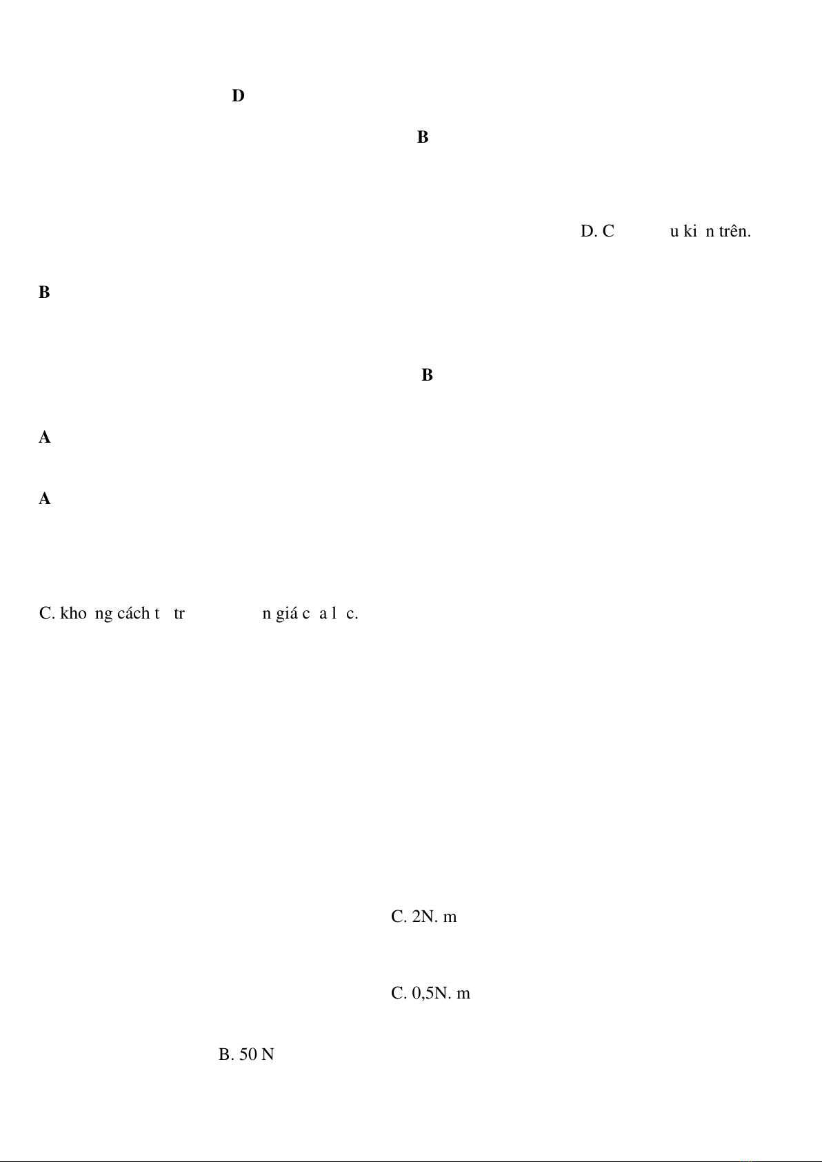 Câu 13. Để có mômen của một vật có trục quay cố định là 10 Nm thì cần phải tác dụng một lực bằng bao