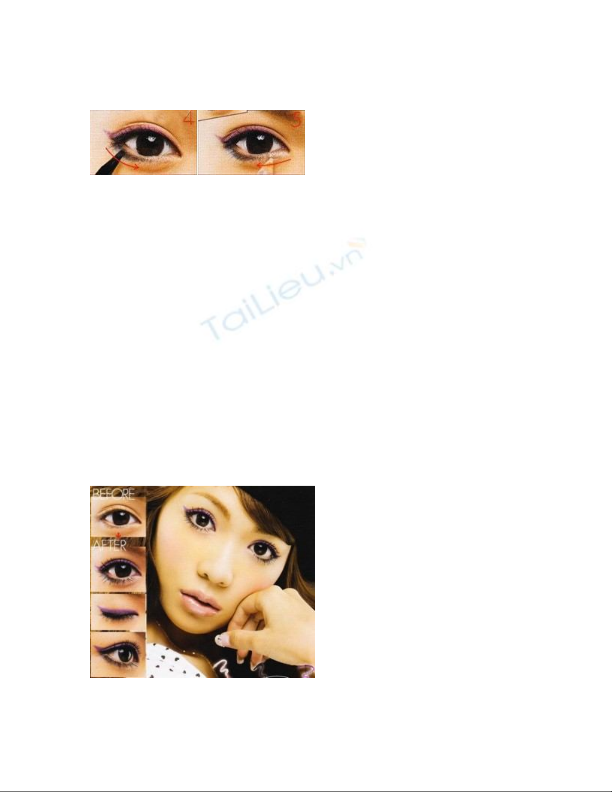 đường cong của đuôi mắt dưới. Lưu ý không kẻ mi mắt trên dài quá so với