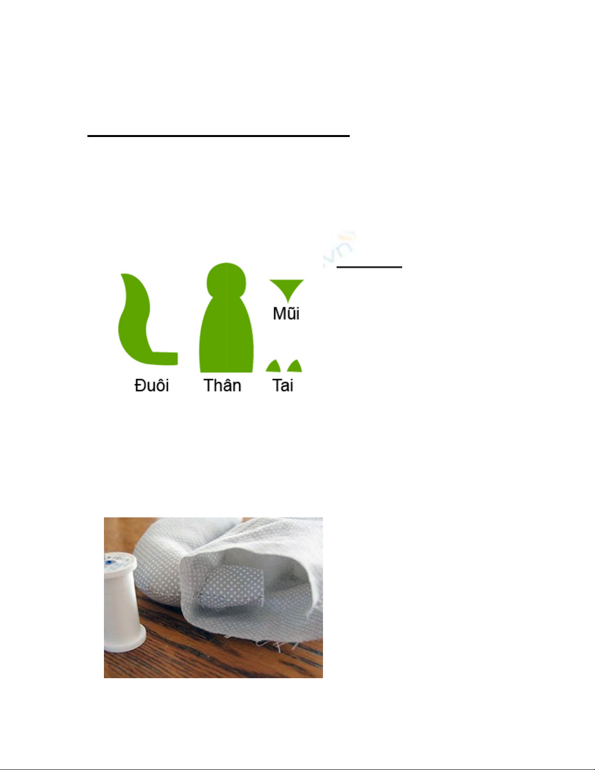 rồi khâu vào với đầu cáo. Rùi khâu 2 mảnh thân lại với