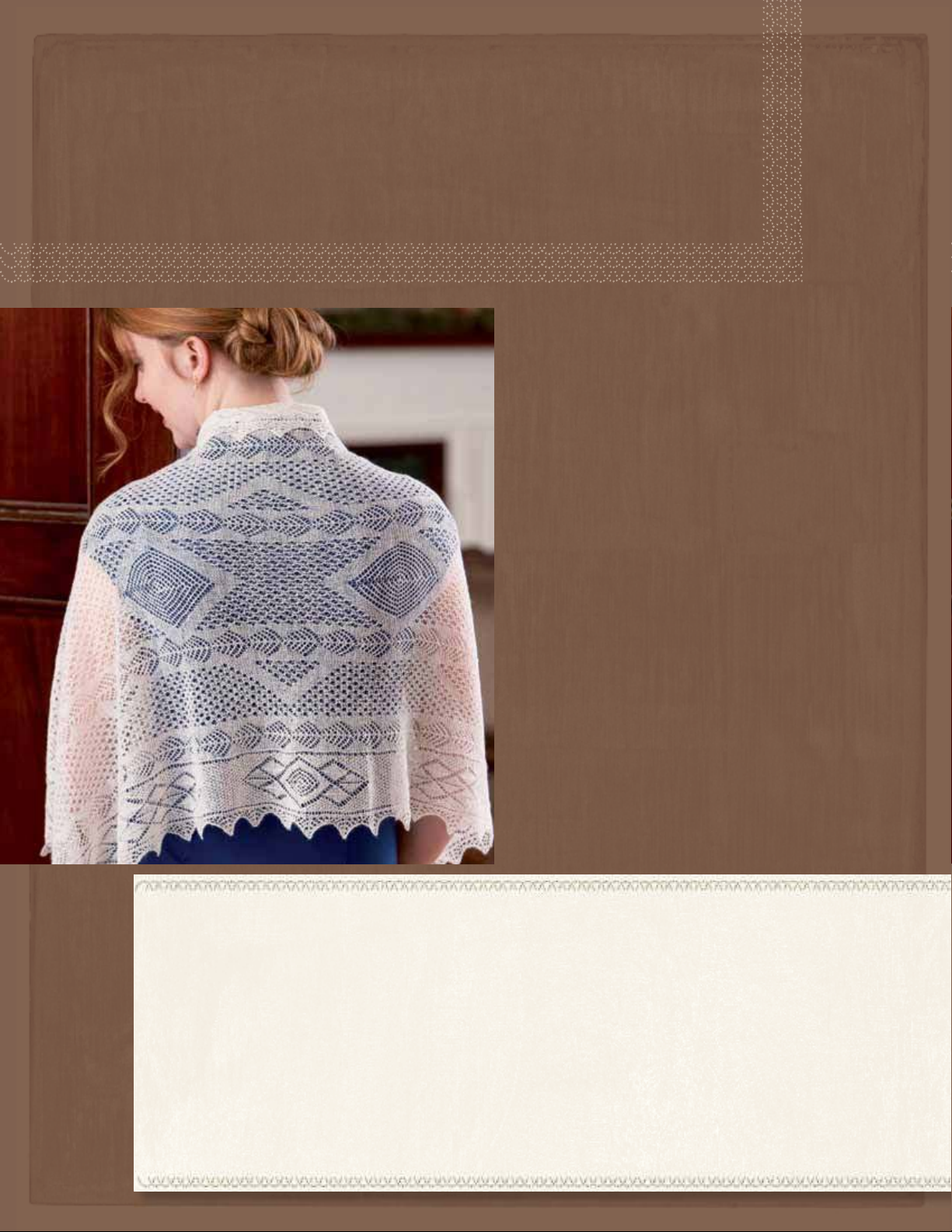 over 15 sts, [k2tog, yo], work Row 22 of Diamond Bor-