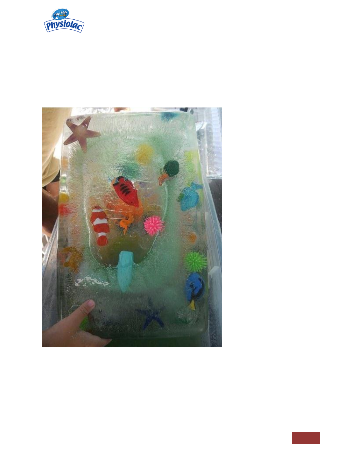Sau khi đá đã đông lại, bạn có thể lấy ra, để vào bồn tắm hoặc chậu thật to để bé chơi trò “giải