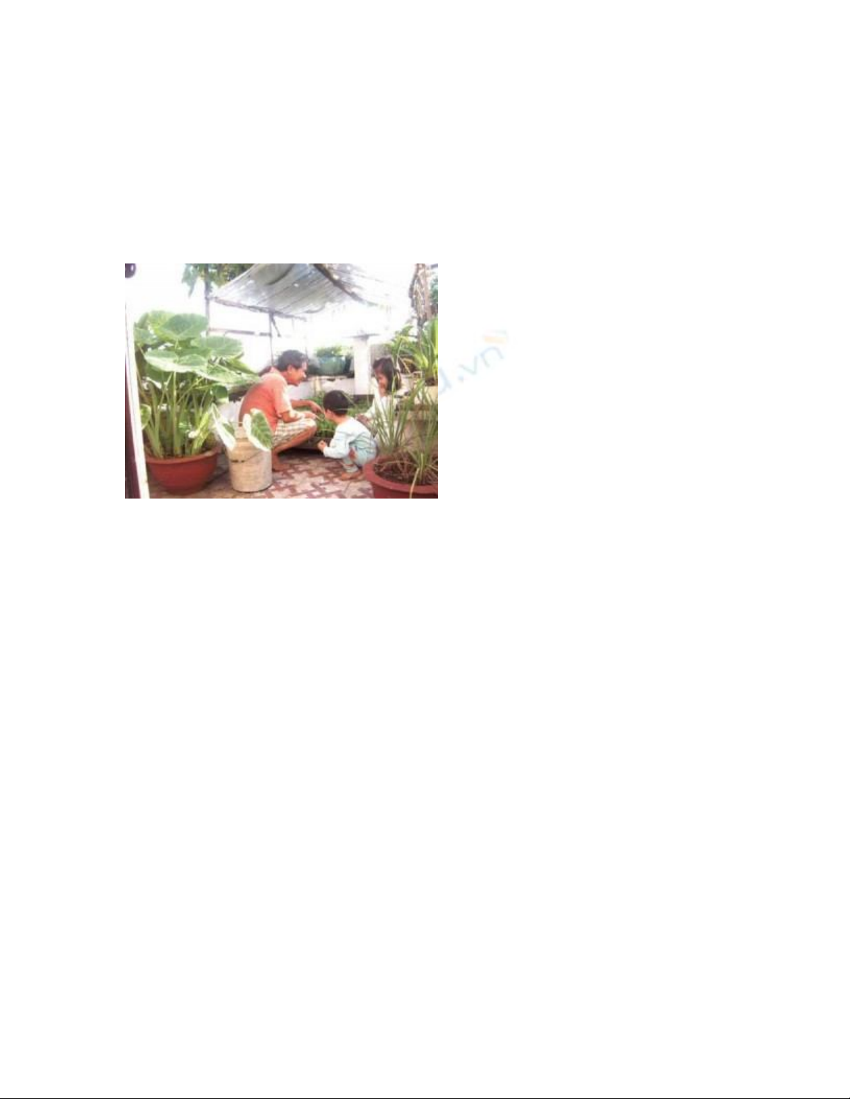 xuyên. Trong bồn trồng mướp, ông Dũng tranh thủ dặm thêm bồ ngót ta, bồ
