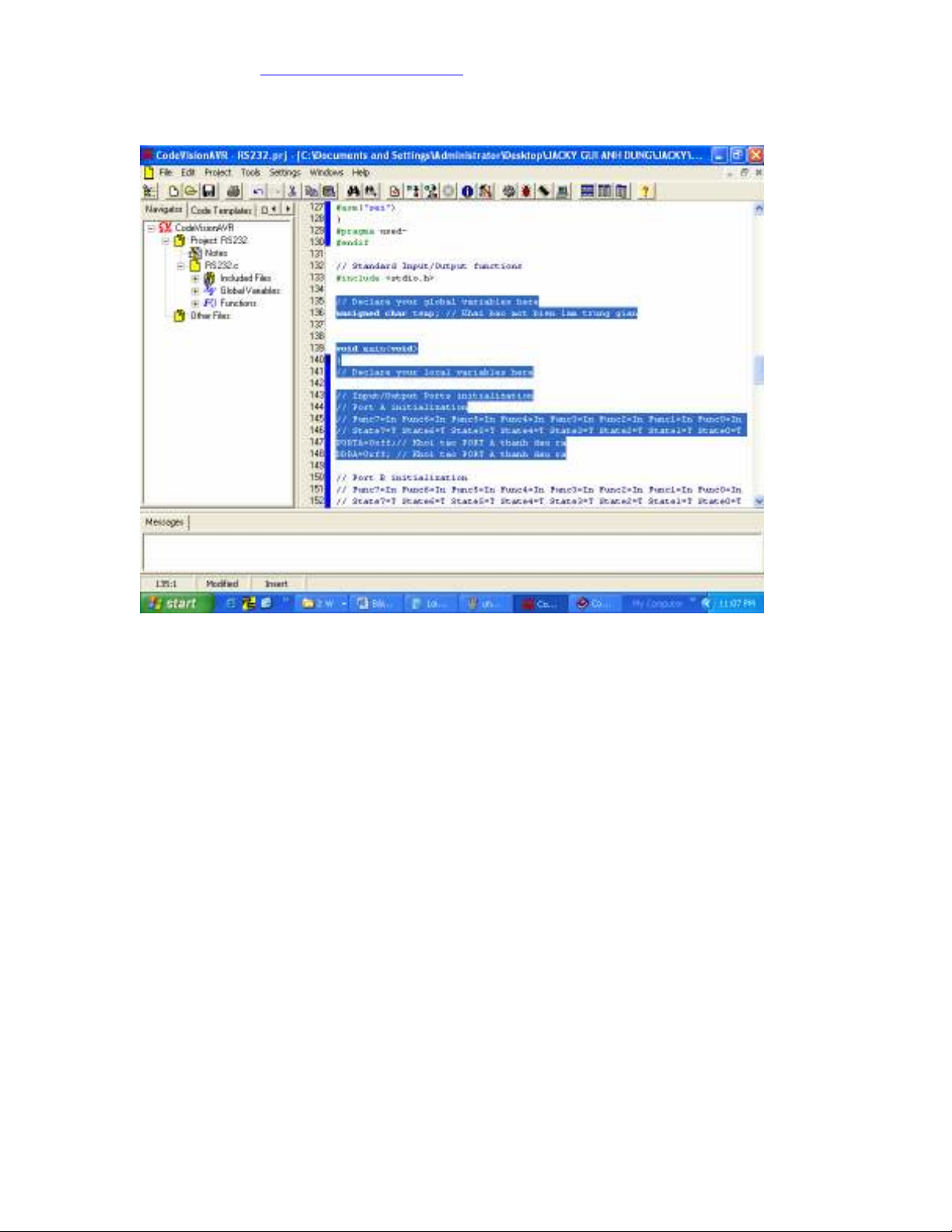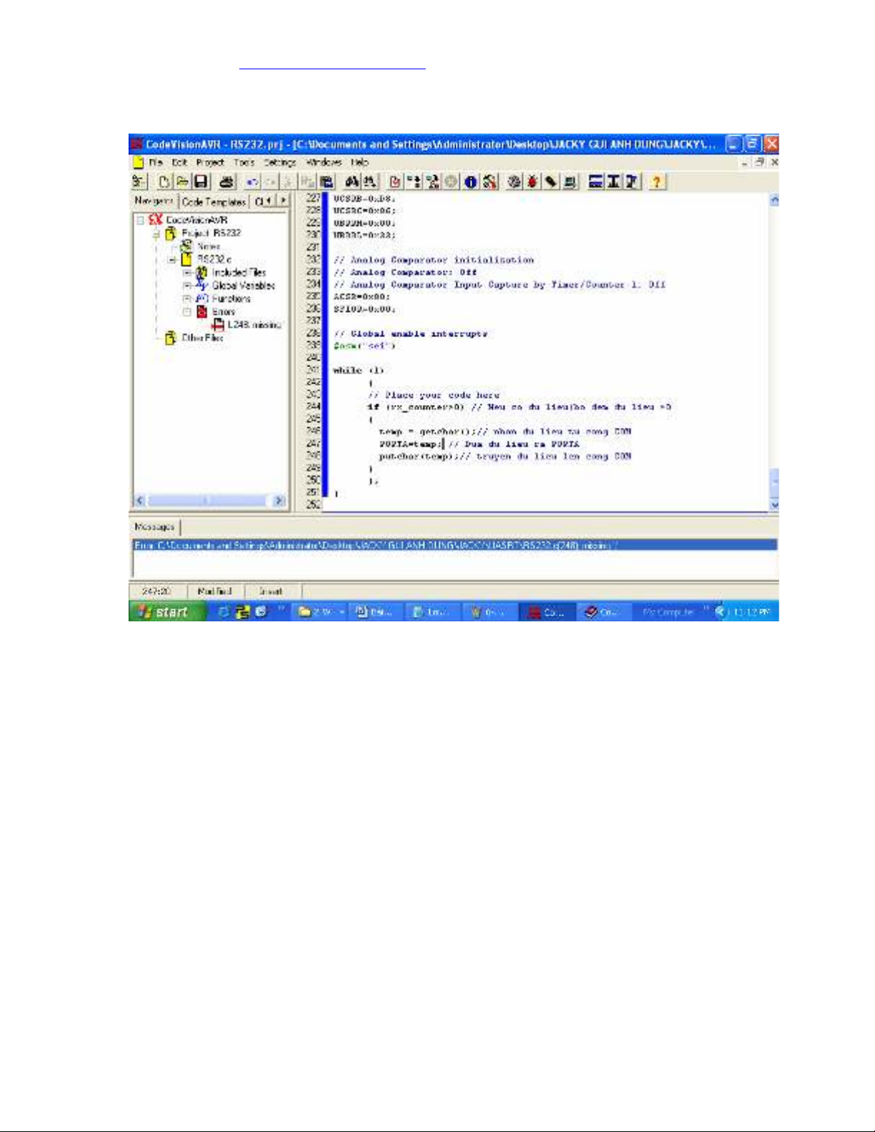 - Bi t kh i t o RS232 trong CodeWinzard AVR. ế ở ạ