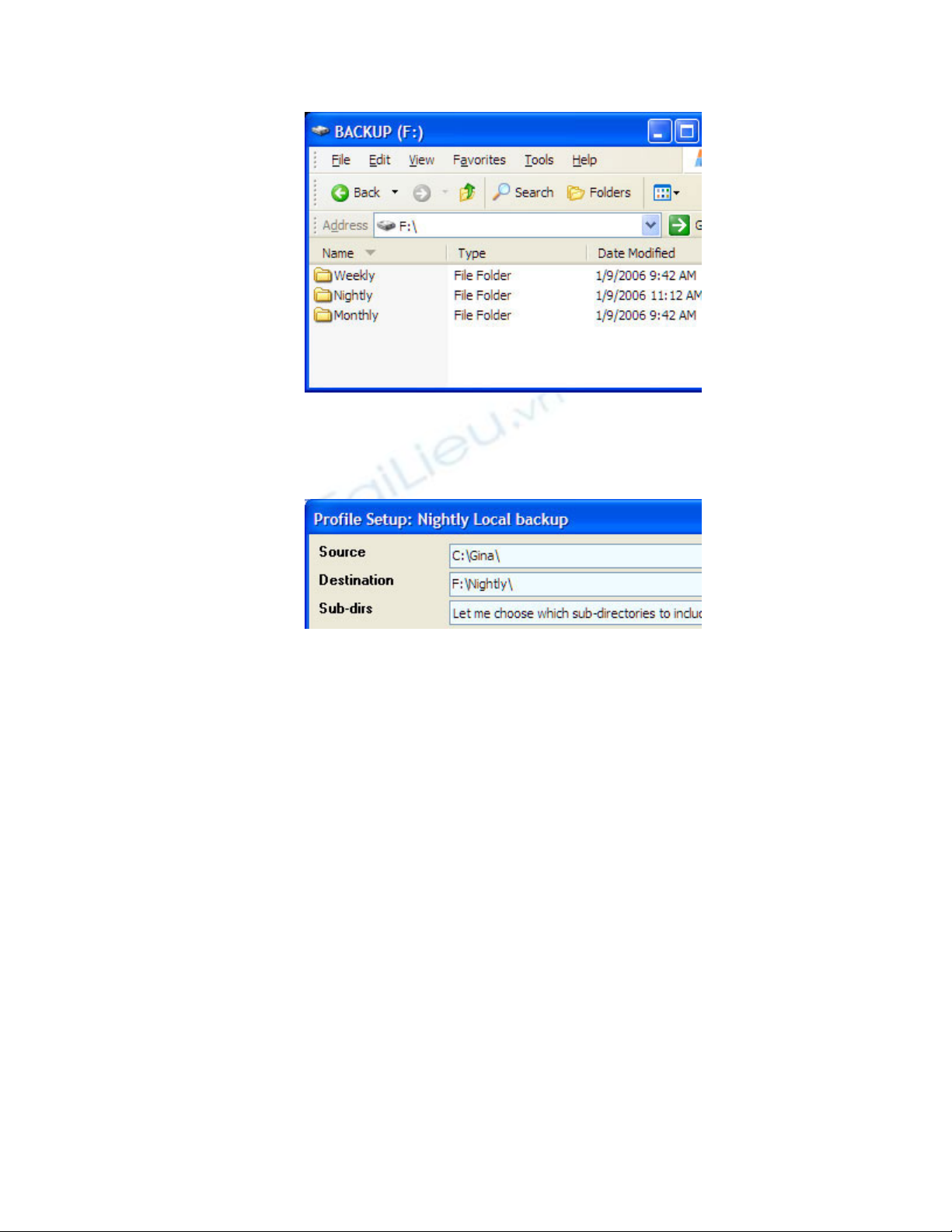 "Nightly Local Backup". Thiết lập thư mục nguồn là thư mục tài liệu của bạn và