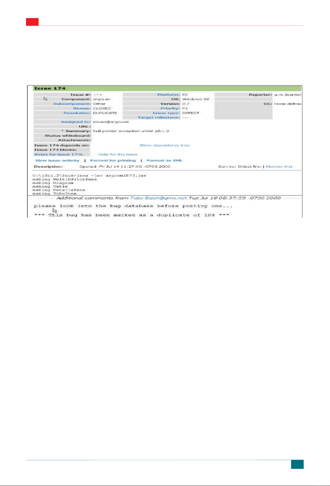 Argo UML, trong đó, một báo cáo lỗi được gởi đến