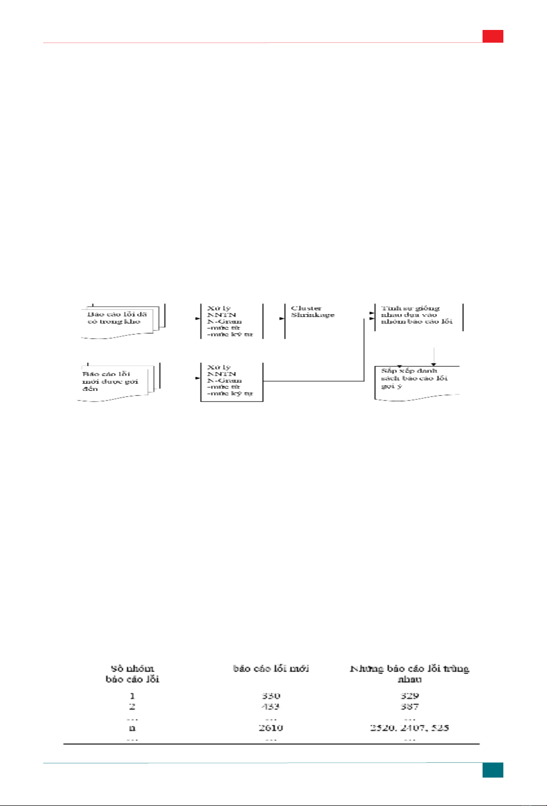 Từ khóa: Báo cáo lỗi, dò tìm lỗi trùng nhau, đặc điểm N-gram, phân tích báo cáo lỗi, Cluster Shrinkage.