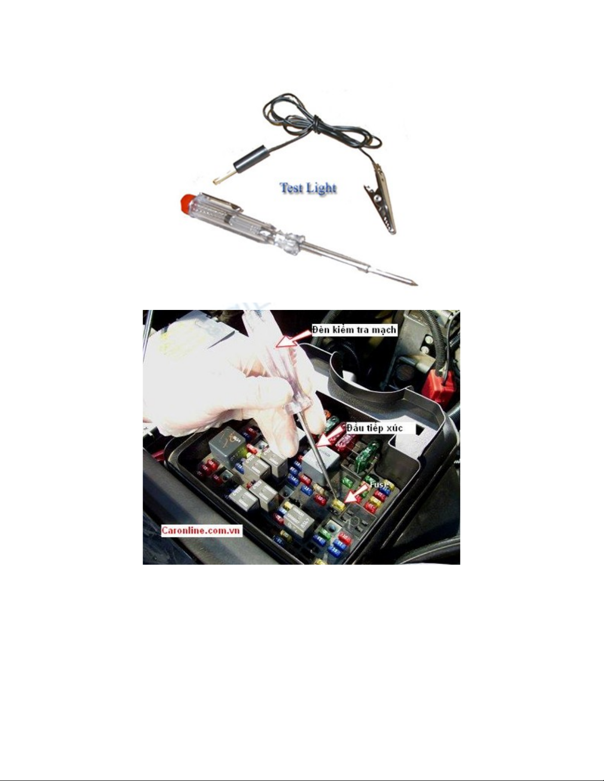 trí làm vi c hai bên đ nh c a c u chì. N u đèn ki m tra đ u b t sáng c hai v trí đó thì cóệ ở ỉ ủ ầ ế ể ề ậ ở ả ị