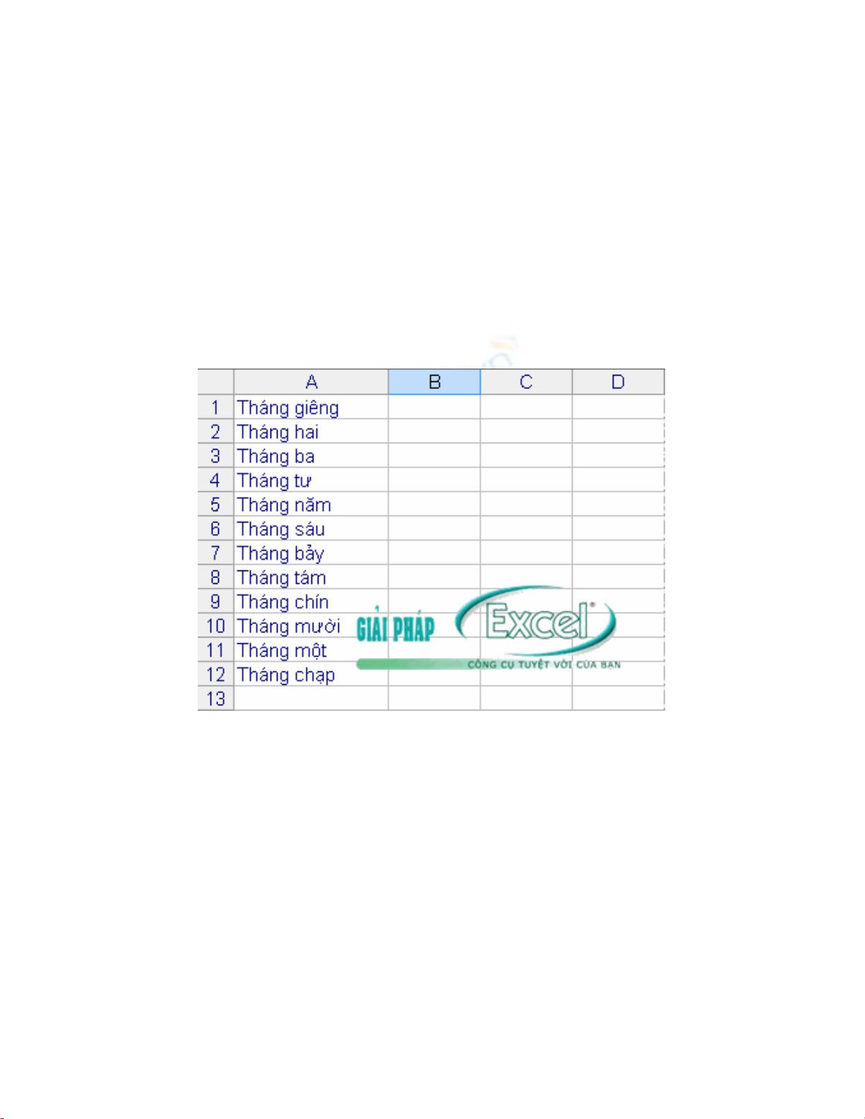 tạo list là gõ danh sách bạn cần vào các ô. Thí dụ bạn cần danh sách các tháng trong