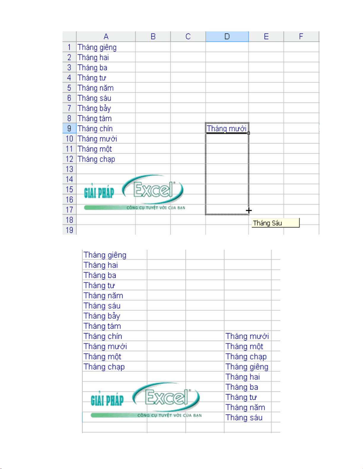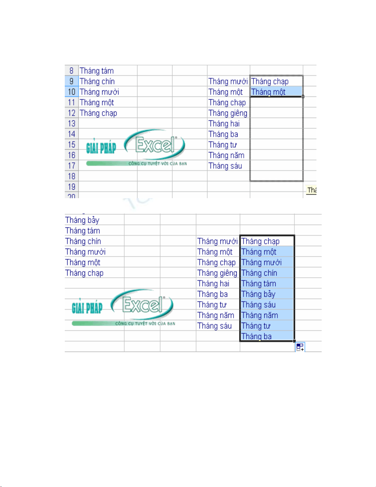 năm, thứ trong tuần. Bạn chỉ cần gõ 1 từ đầu (có trong list), rồi kéo cái Fill Handle,