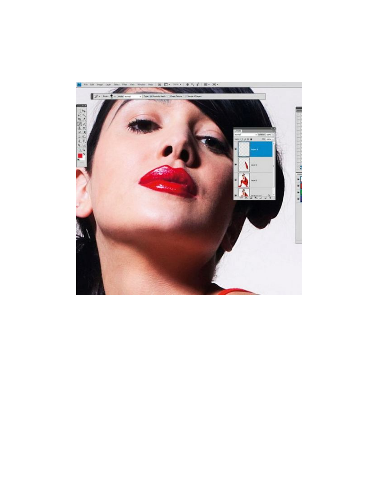 khoảng 50 pixel, đưa chổi quét vào vùng da còn đôi chút xù xì,