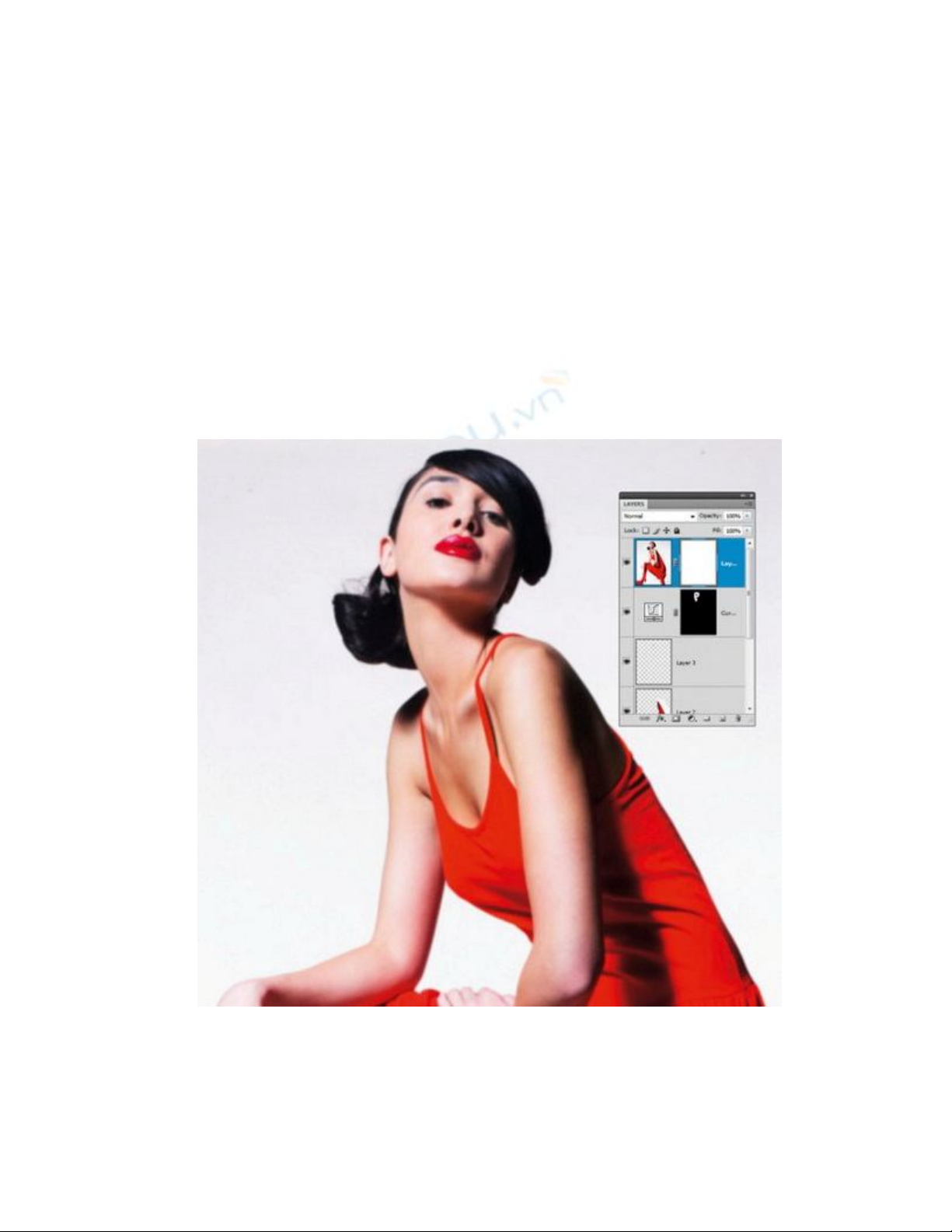 chỉnh layer này. Đăt màu foreground trắng, bạn có thể sử dụng