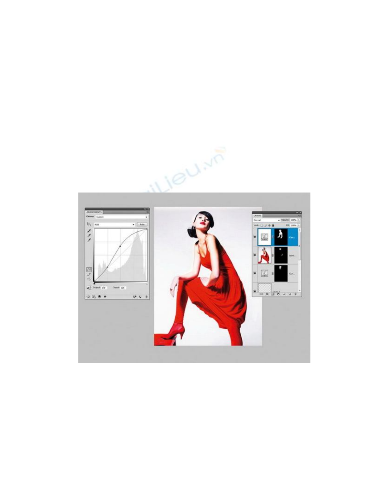 Giữ phím Ctrl, nhấn vào Curves Layer Mask để áp dụng lựa