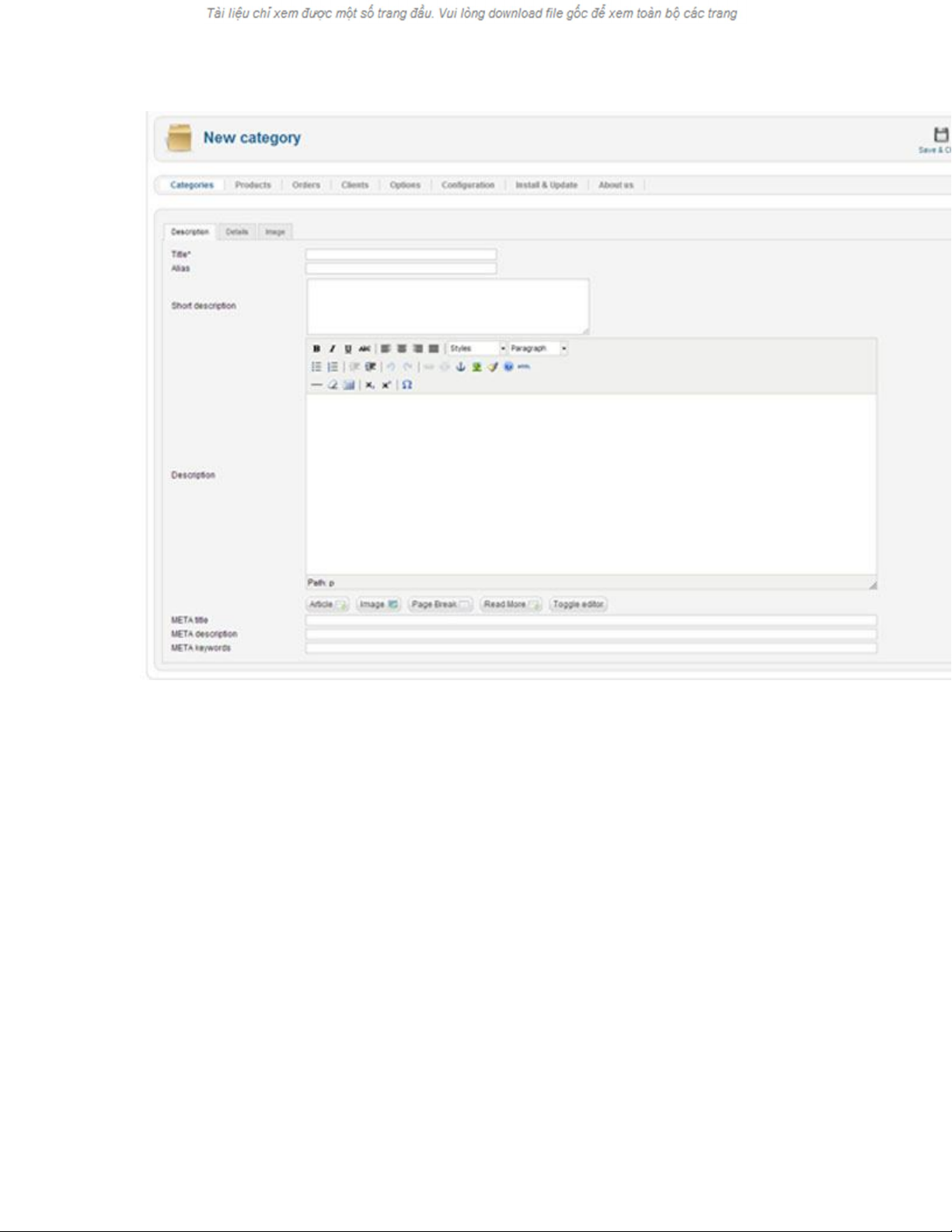 component joomshopping, cách tạo mới một danh mục và tìm hiểu các
