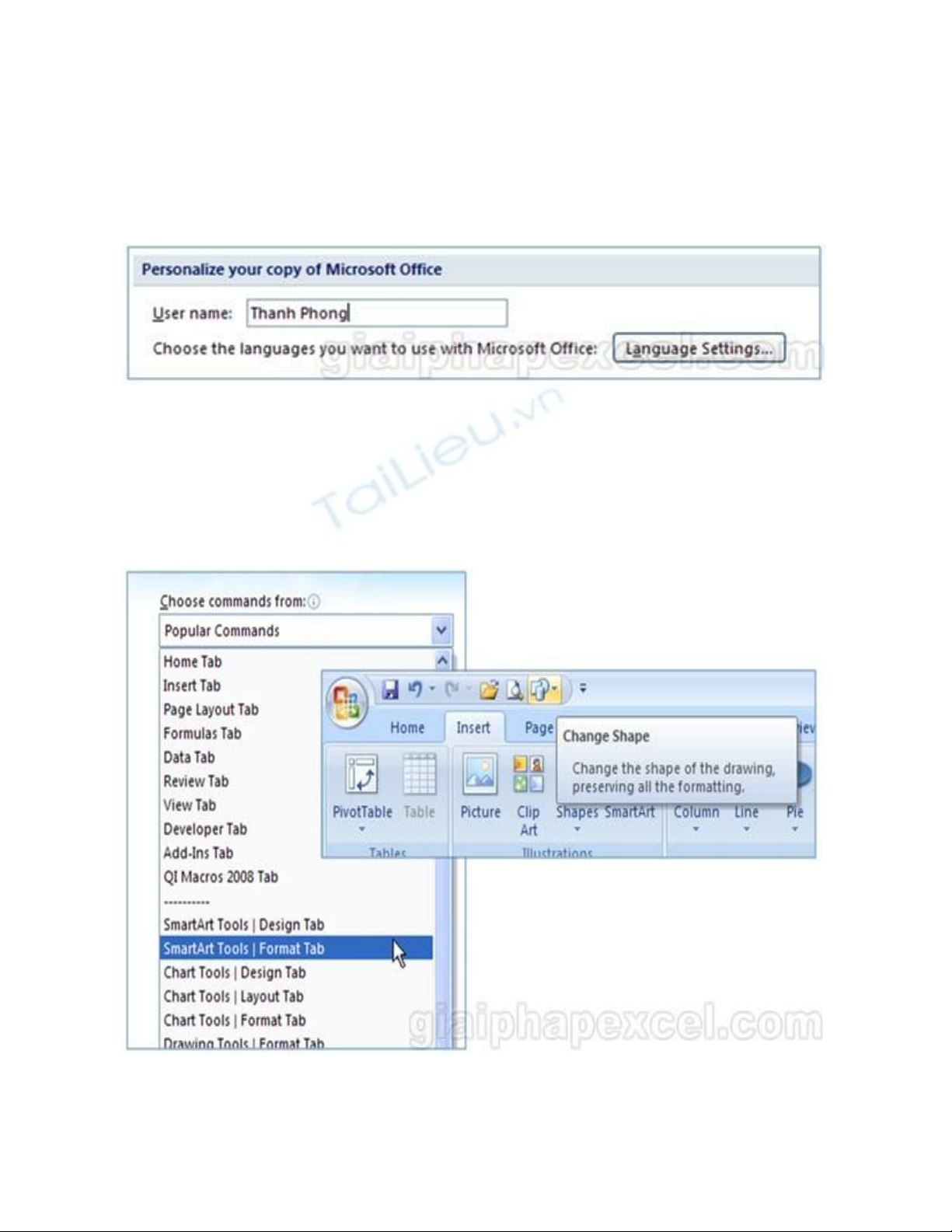 đó, các bước thực hiện như sau: Office ➝ ➝ Excel Options Customize. Tại hộp Choose
