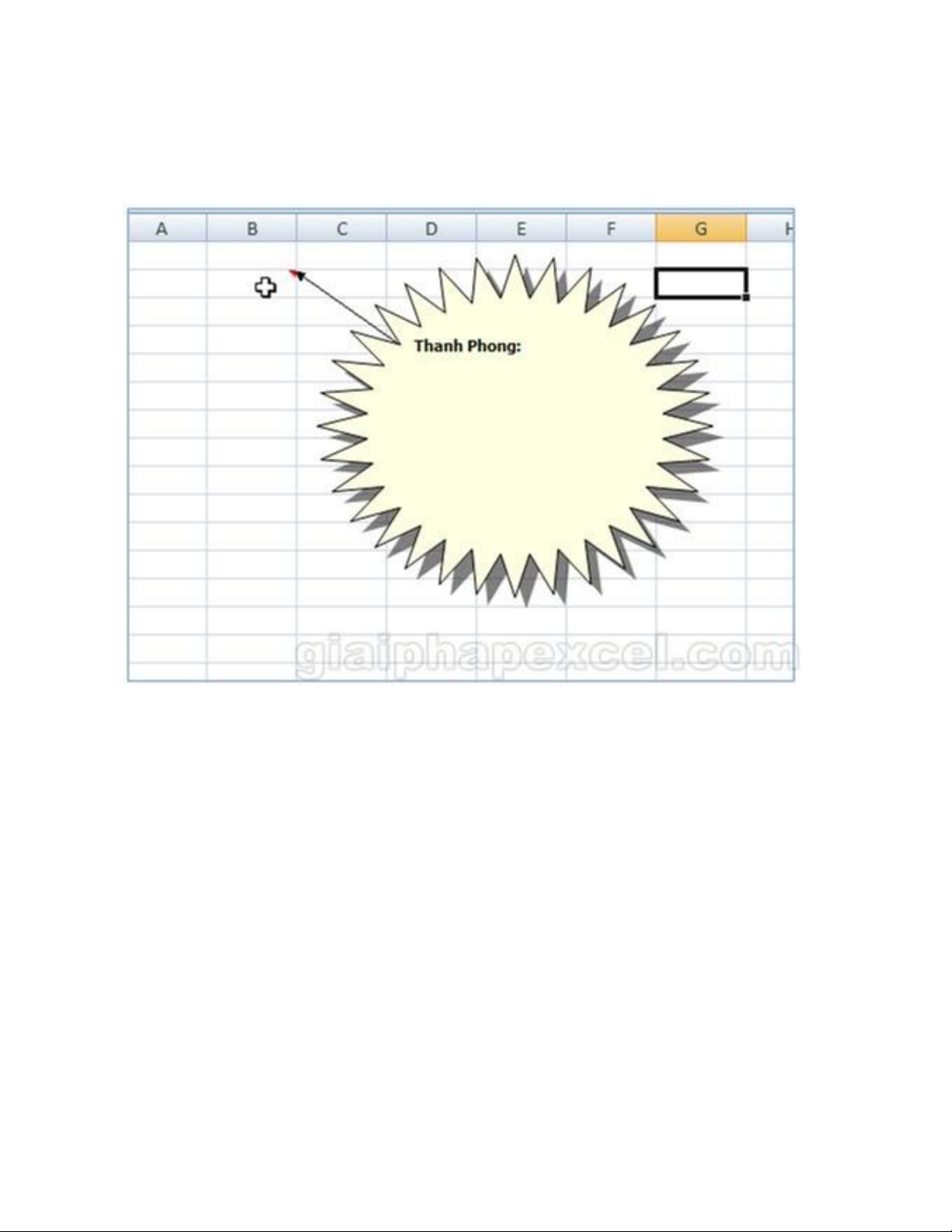 Callouts và Stars and Banners ➝ sau khi chọn hình thì hình dạng hộp chú thích của ô sẽ