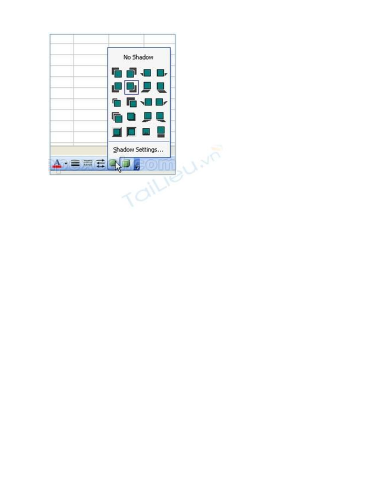 chú thích ➝ vào thanh Drawing ➝ chọn nút lệnh Shadow Settings ➝ chọn kiểu mong