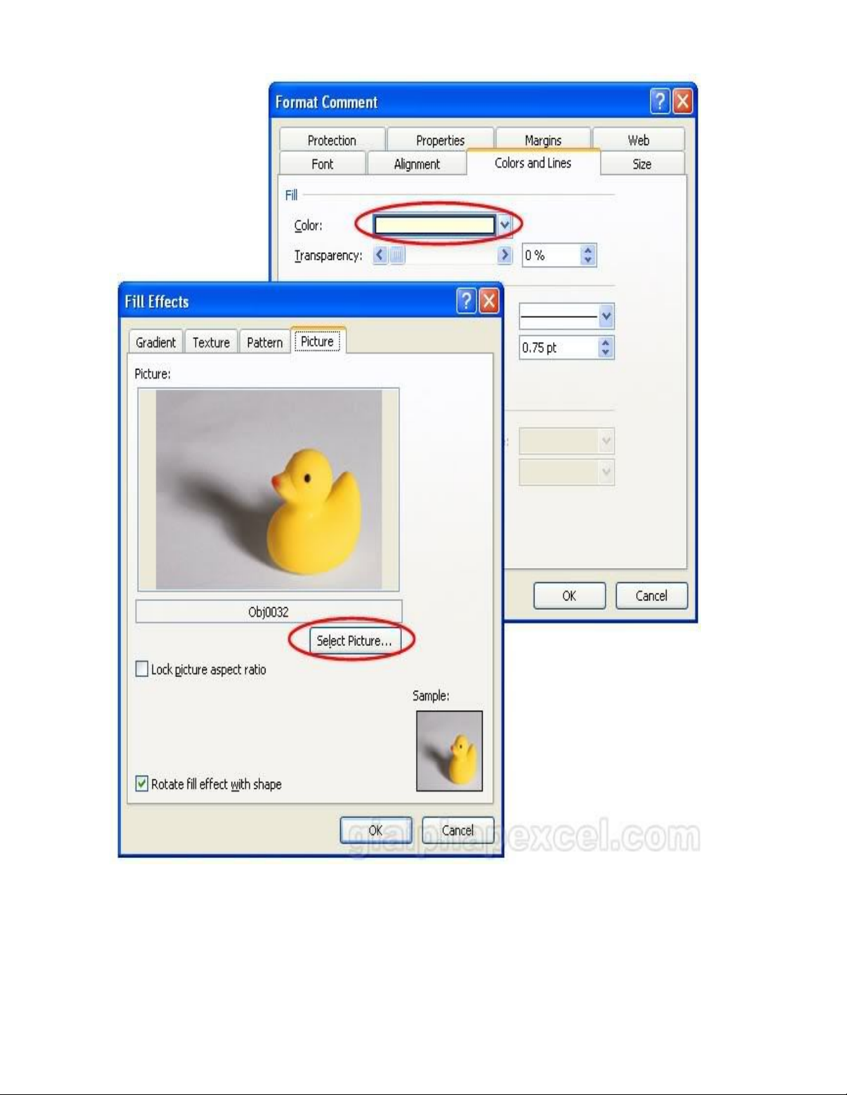 ngăn Colors and Lines ➝ tại hộp Color, chọn Fill Effects ➝ chọn nút Select Picture ➝ chọn