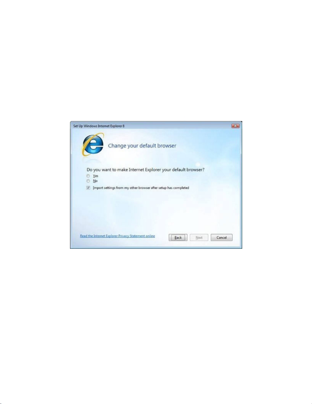 Đối với những người dùng đã đặt trình duyệt khác làm mặc định, khi cài đặt IE8